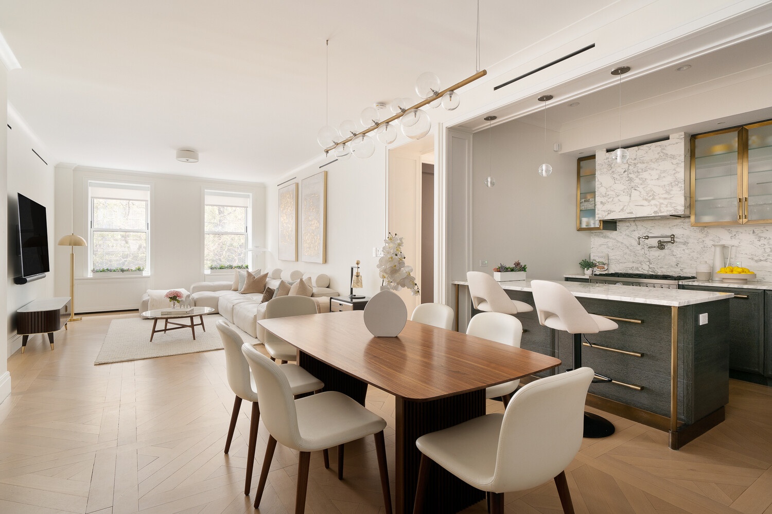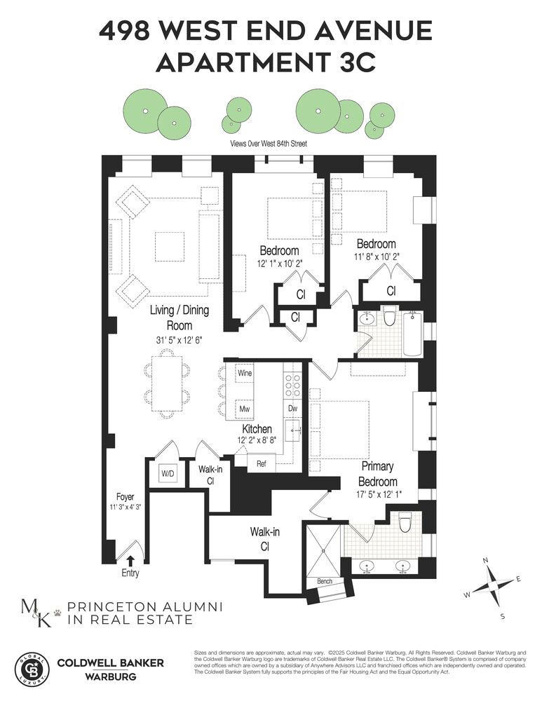 Residence 4C at 498 West End Avenue is a beautifully designed three-bedroom, two-bathroom home that offers the rare combination of grand pre-war elegance and the ease and flexibility of condominium living.