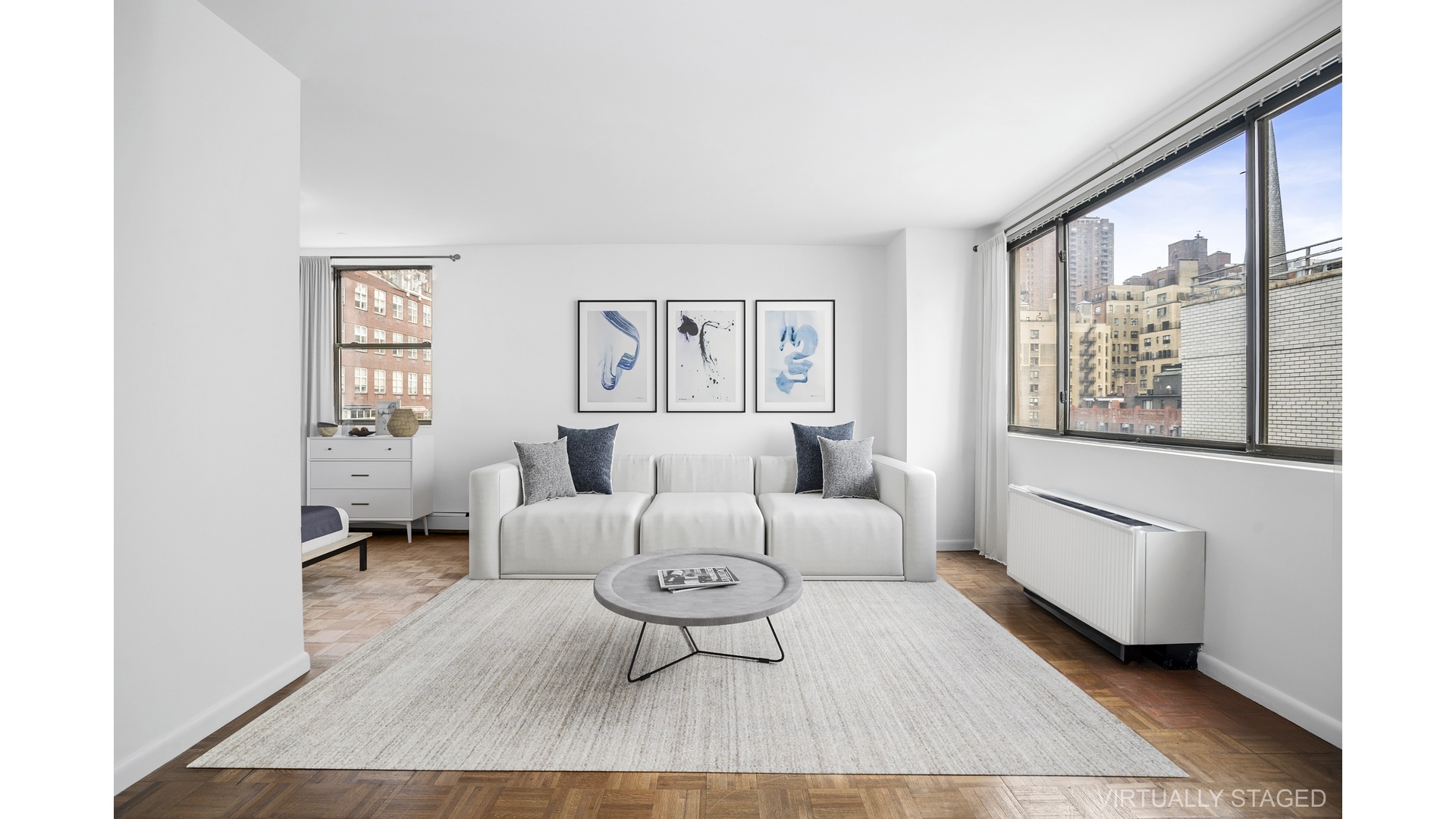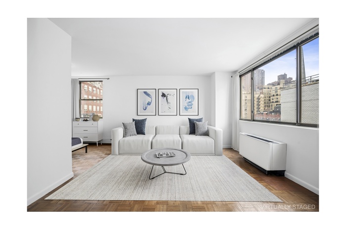 Residence 10C is an oversized, high-floor alcove studio ideally positioned on a quintessential tree-lined block in the heart of the Upper East Side. Bathed in natural light, this inviting home boasts a flexible and functional layout, complemented by high ceilings, four generously sized closets, and dual North and West exposures that create an airy, open ambiance throughout.