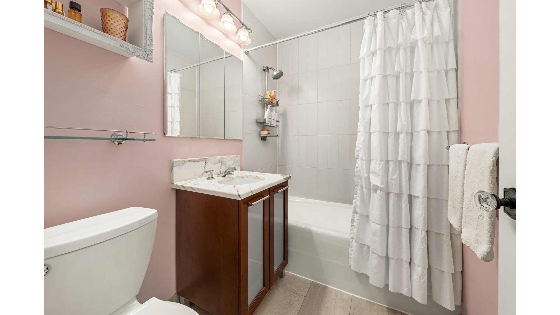 Drenched in natural light, this beautifully designed residence features three generously sized bedrooms, a spacious living and dining area, and an oversized kitchen ideal for both everyday living and entertaining. The fully renovated kitchen and all bathrooms showcase sleek, modern finishes, while custom closets throughout provide exceptional storage. An in-unit washer/dryer adds to the home's convenience.