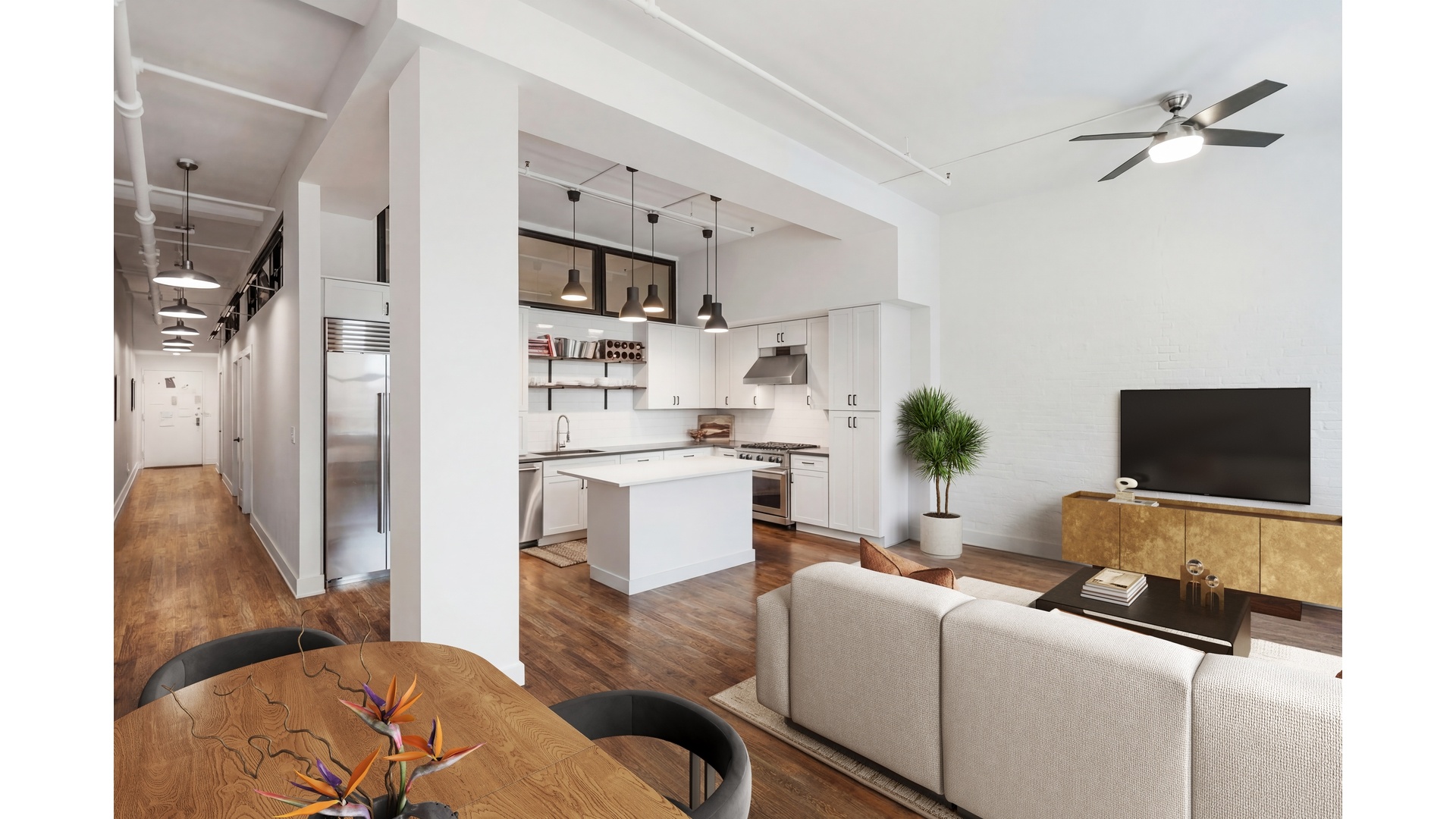 Welcome to Apartment 5A, a beautifully renovated loft style residence with soaring 11 foot ceilings and an exceptional blend of character, scale, and modern comfort.