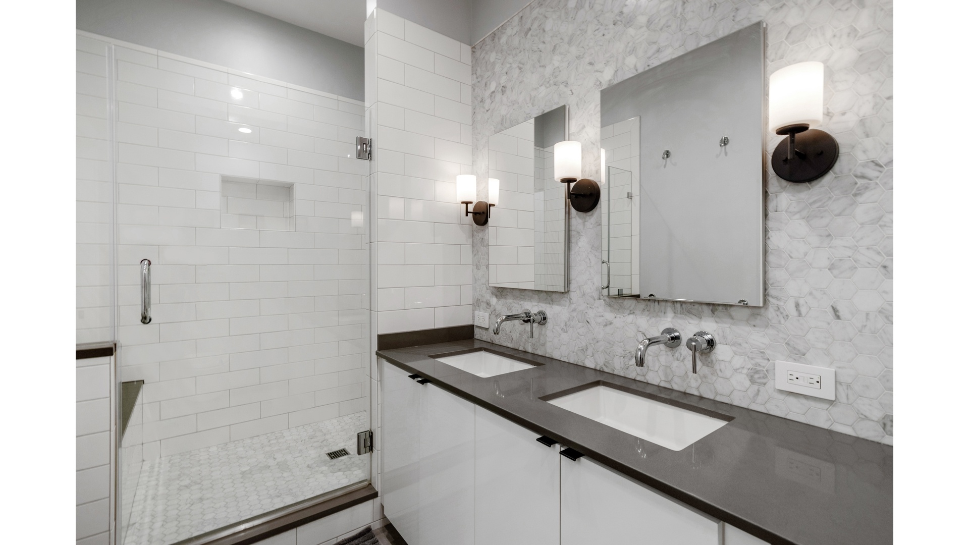 The king-sized primary bedroom is lined with ample closets and connects to a beautifully appointed en-suite bath. Both interior bedrooms were constructed with CitiQuiet windows, providing a quiet retreat while still allowing for natural airflow. The secondary bedroom easily accommodates a queen-sized bed and also works well as a home office or guest room. A washer and dryer were added during the renovation, and excellent closet space can be found throughout.