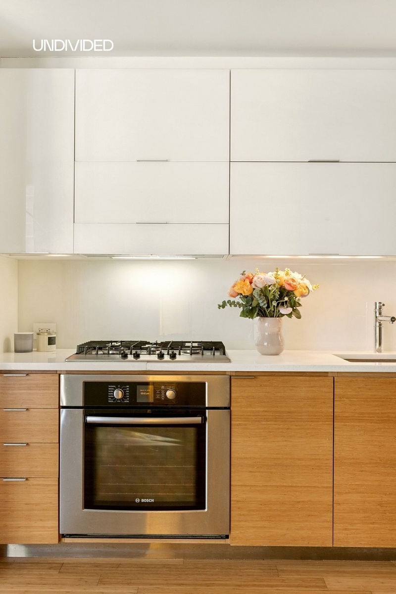 The separate kitchen and dining room embrace sleek modern aesthetics of the highest quality, featuring state-of-the-art Bosch appliances. The contemporary living space includes climate control heat and A/C, bamboo floors, kitchen custom cabinetry, glass countertops, and an energy-efficient Bosch stackable washer/dryer, all in like-new condition. The bathroom interiors feature Bianco Dolomiti marble walls, sparkling quartzite tile floors, beautiful glass mosaic tiles, and Kohler and Grohe fixtures. All furniture is available for negotiation.