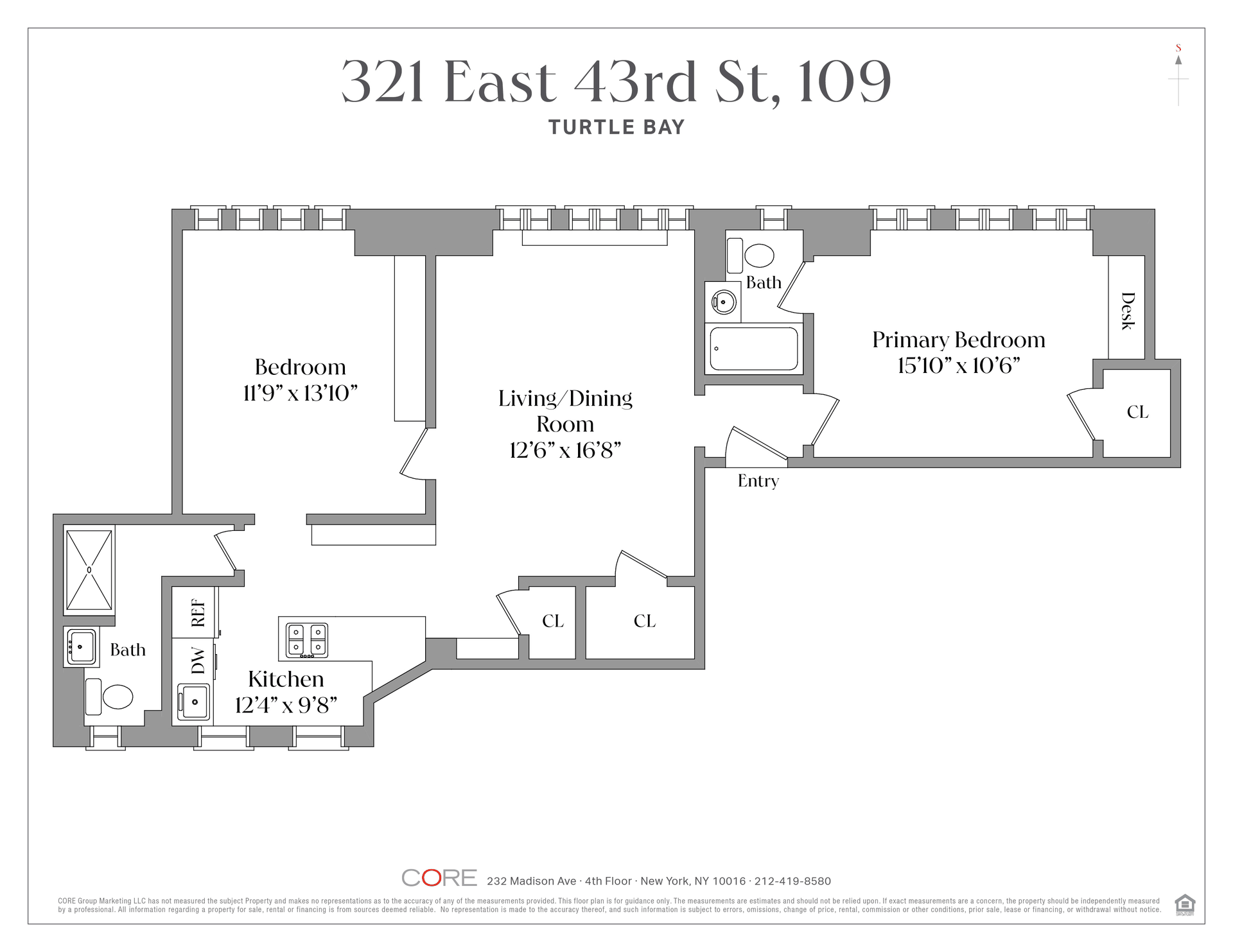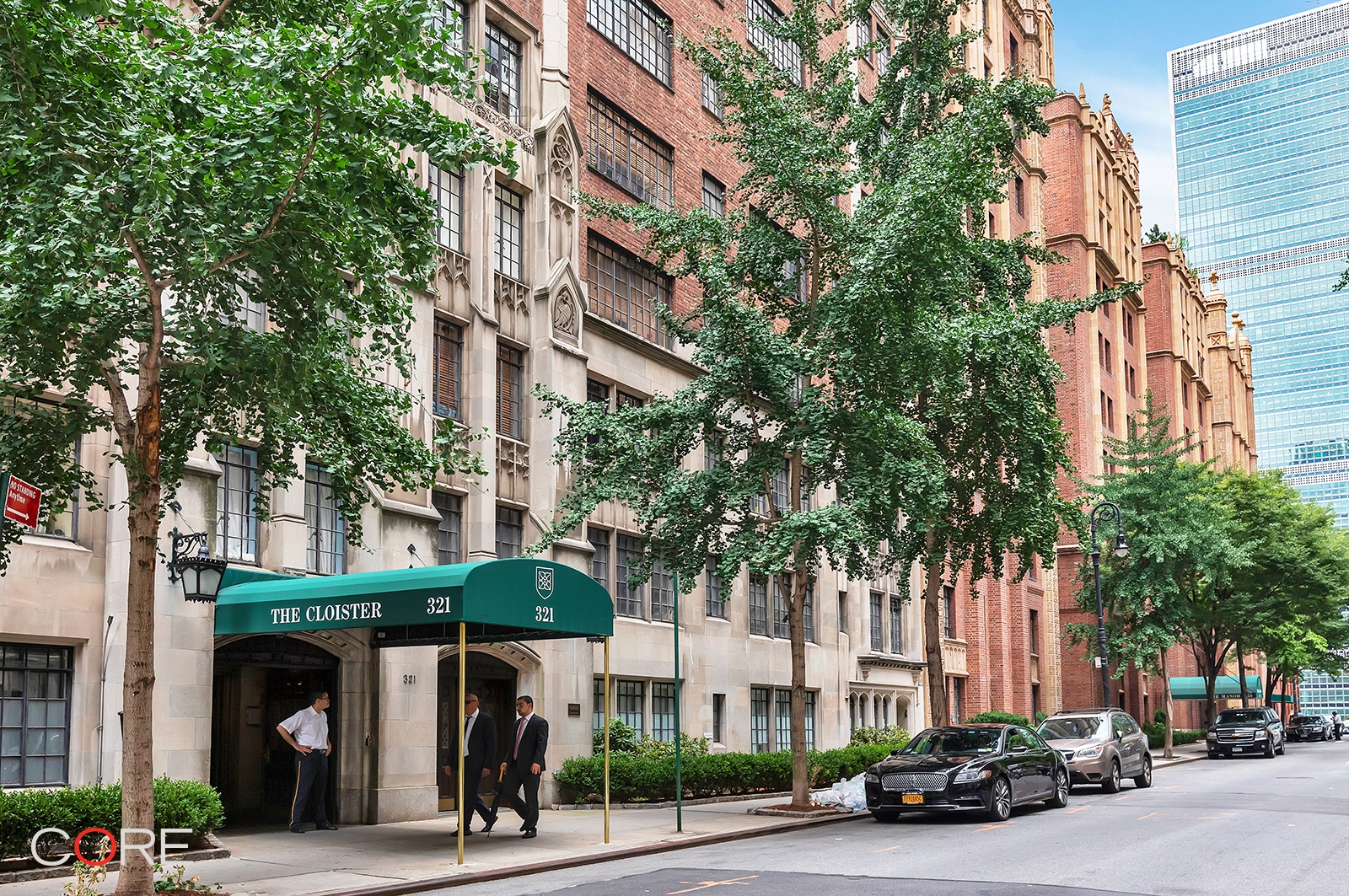 Set within the historic Tudor City enclave, this residence is part of one of New York City’s earliest planned residential communities, developed in the late 1920s and celebrated today as a landmark district for its distinctive Tudor Revival architecture and “old world” charm. The Cloisters itself is admired for its intricate brick and terracotta façade, architectural detailing, and intimate scale, with building amenities that include a full-time doorman and laundry room.