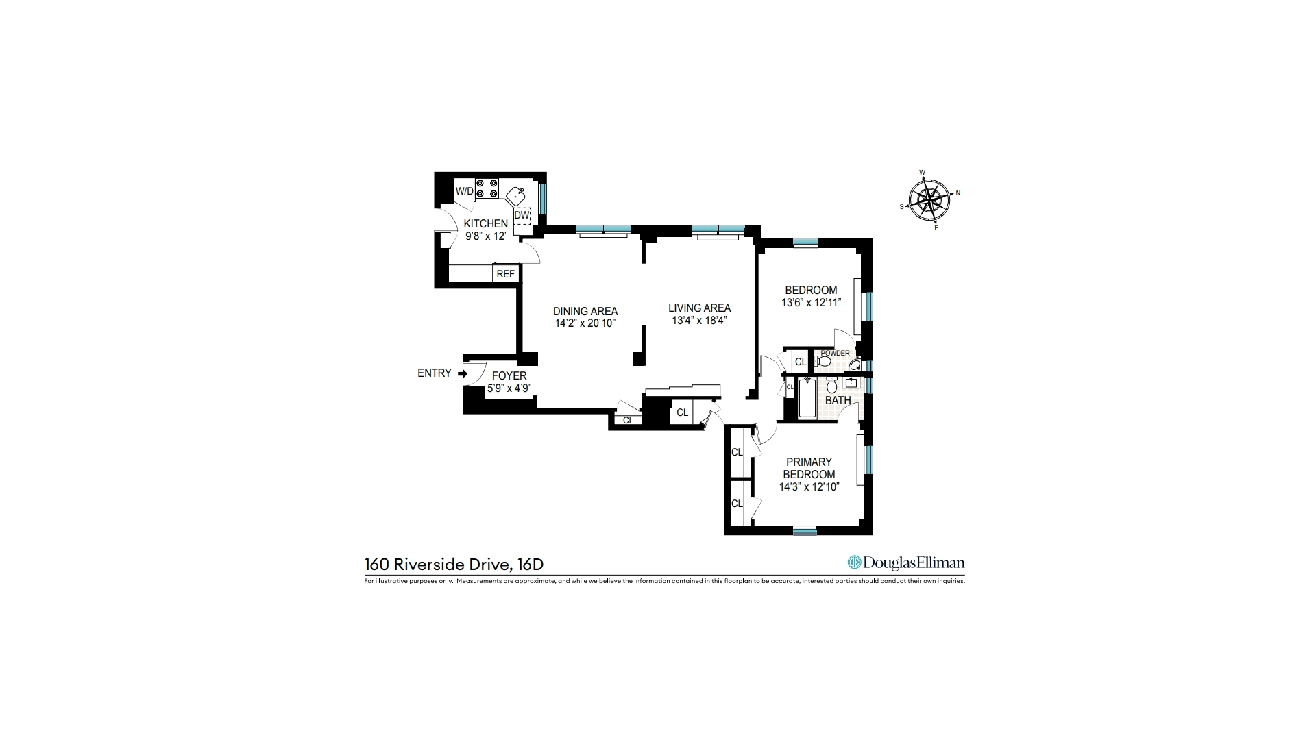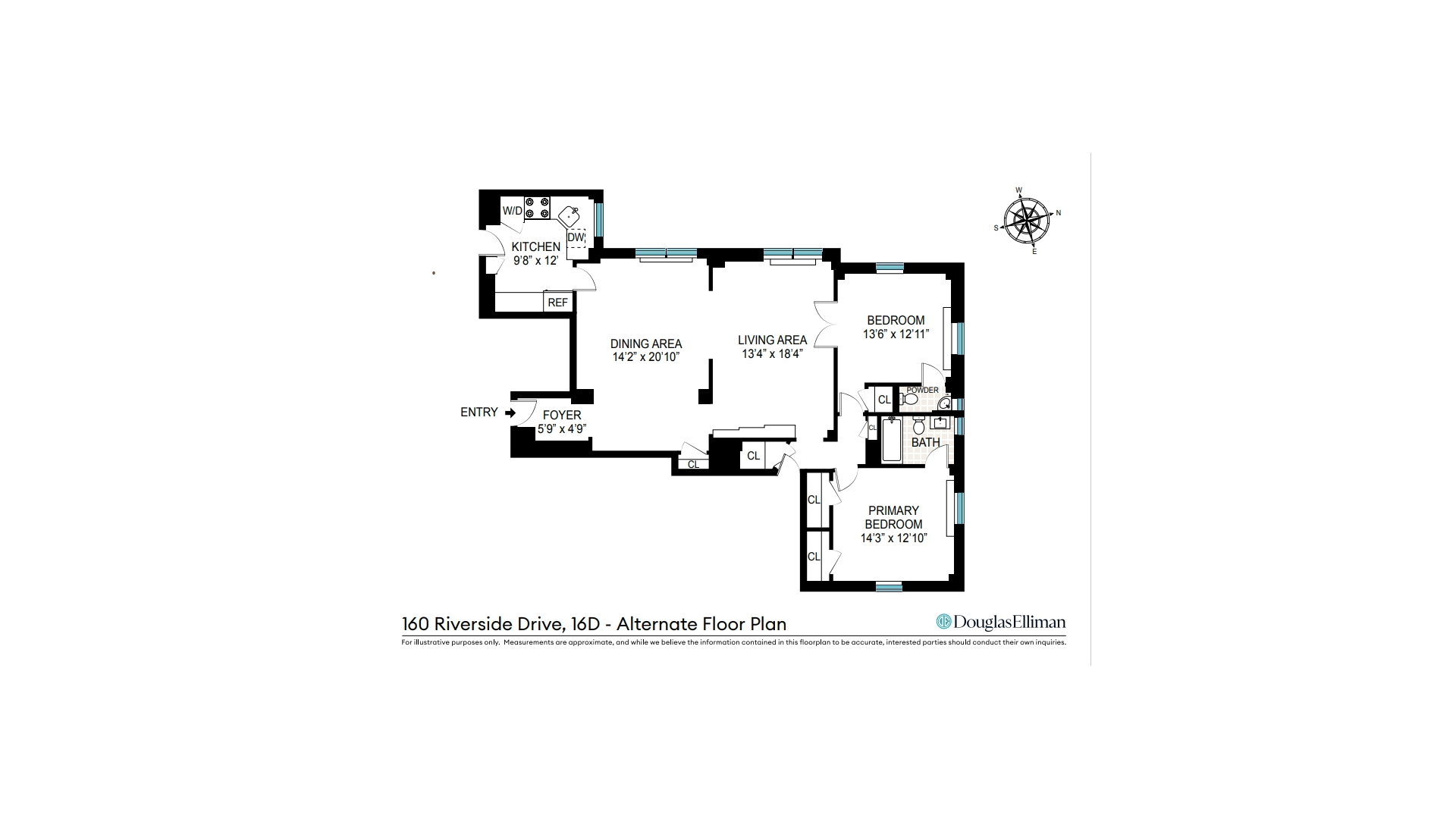 Perched on a high floor along one of the Upper West Side's most coveted stretches, Residence 16D at 160 Riverside Drive is a spacious and light-filled home that blends classic prewar character with an inviting, functional layout. With 3 exposures and oversized windows on a high floor, the apartment enjoys abundant natural light throughout the day, along with views of the river and skyline.