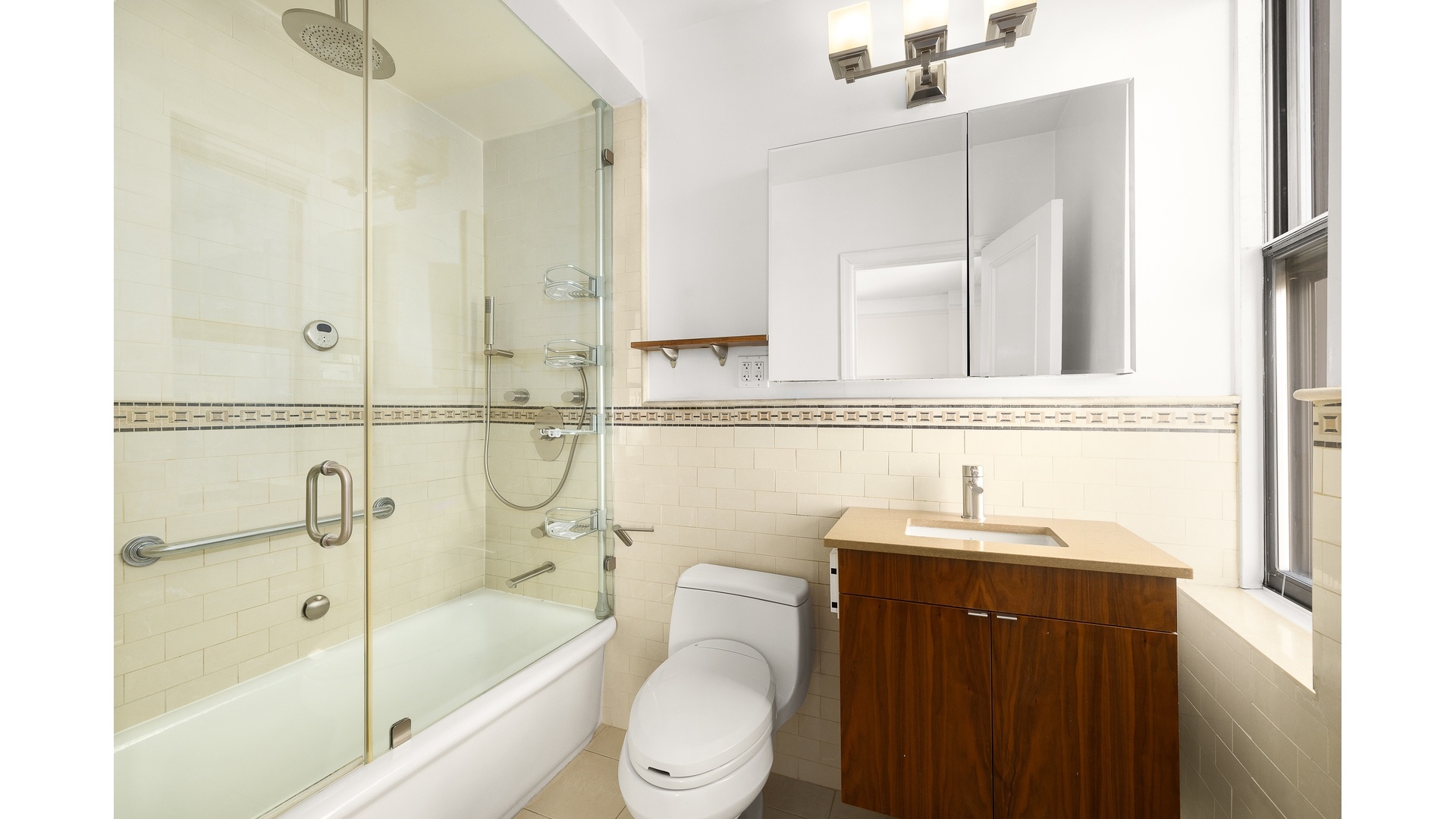 The bedroom wing provides privacy and comfort, with generously sized rooms. Each bedroom offers good closet space, its own en-suite bath, and spectacular views of the Soldiers' and Sailors' Monument, the Hudson River, and the cityscape. The primary windowed bath comes equipped with a rainfall shower head and steam feature. The 2nd bath offers excellent flexibility and can be easily converted into a full bathroom with the addition of a shower stall.