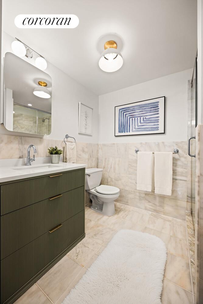 Back upstairs are two more bedrooms nestled quietly in the back with views of the backyard beyond. The primary suite can accommodate a king, and includes two closets, direct access to the backyard, and a newly refreshed primary bath featuring stylish new lighting, hardware, vanity, medicine cabinet, and a stall shower. The second full hall bath was just fully renovated with attractive new tile, a stylish new vanity, lighting and hardware. Another large storage closet with the LG W/D completes the floor.