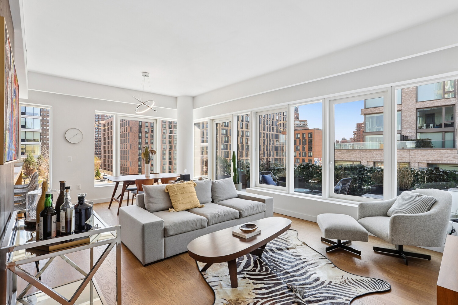 Built in 2021, One Essex Crossing offers full-service living with a 24-hour concierge, fitness studio, sun room, playroom, and a 9,000 SF landscaped private garden designed by CetraRuddy. Steps from Trader Joe's, Target, and the Essex Street Market, with the best of the Lower East Side's dining and culture right outside your door.