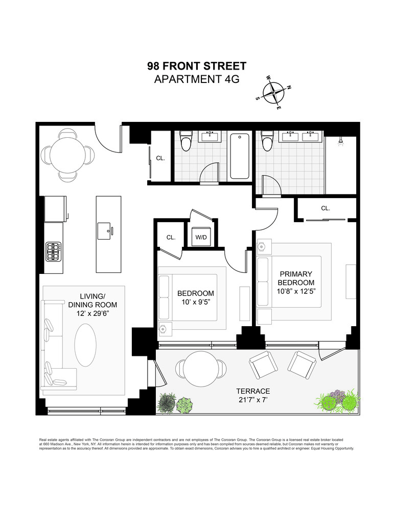 Welcome to Residence 4G at 98 Front Street - a bright, modern two-bedroom, two-bathroom condominium with private parking in the heart of DUMBO.
