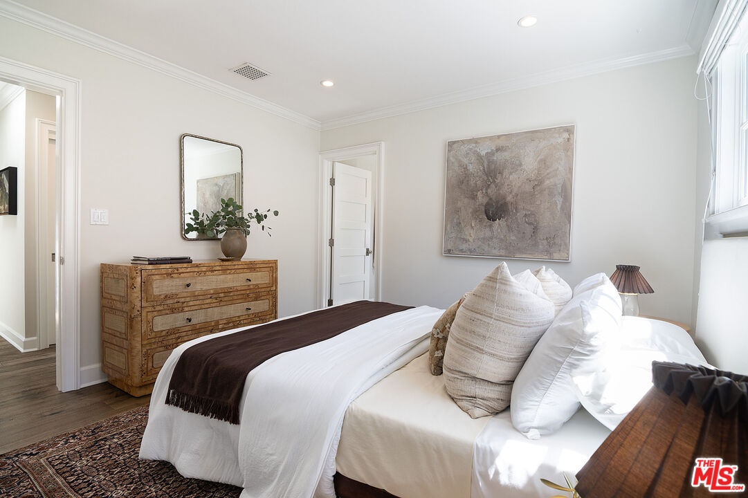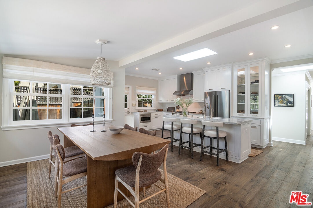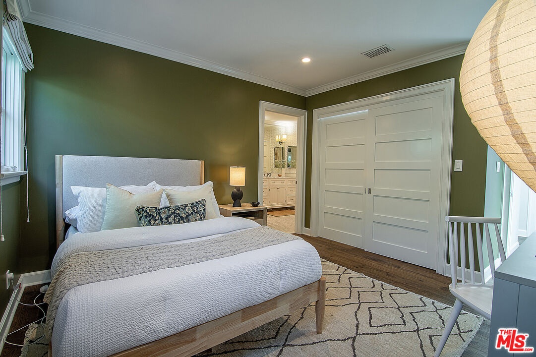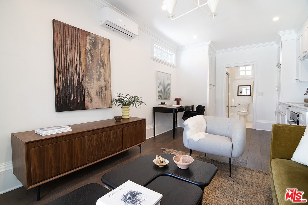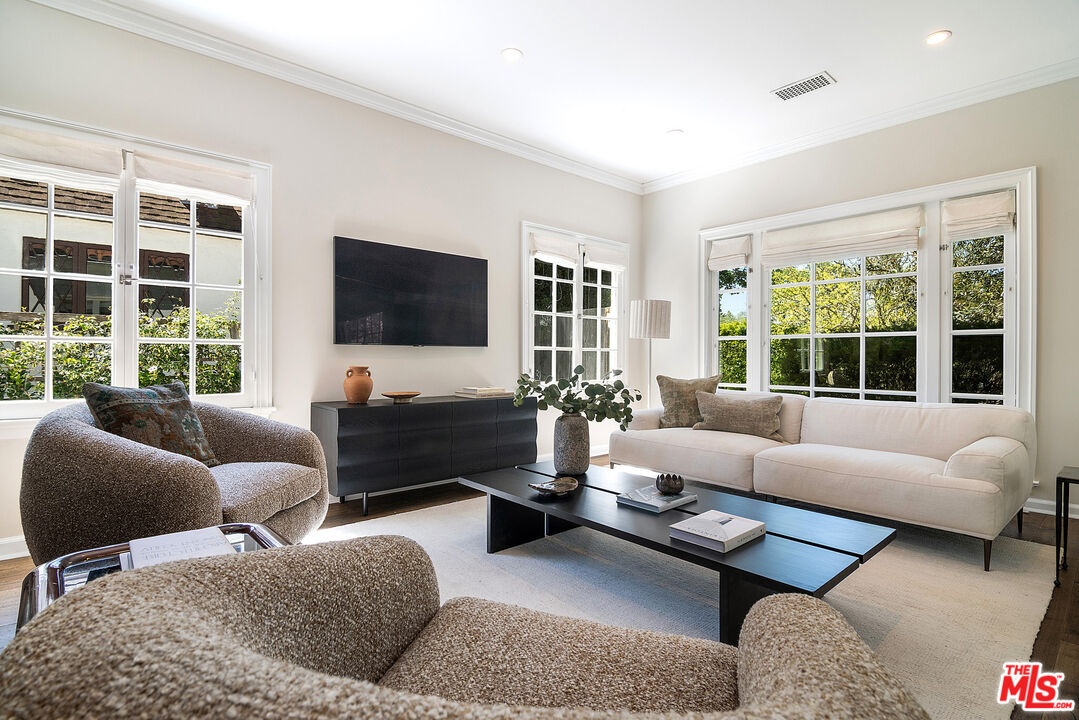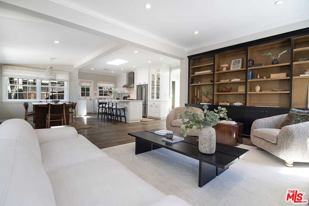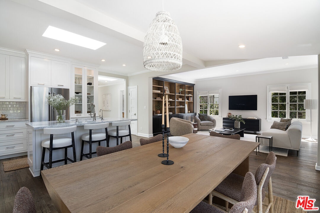 Entirely reimagined and designer remodeled ultra light + bright Single Story Bespoke Timeless Sophisticated Spanish set up for quintessential California indoor/outdoor living with 4 bedroom suites & sunshine everywhere in prime Miracle Mile location! Mini compound features over 2000 sq ft of open floor plan living space great for entertaining, wide plank wood floors, abundant natural light from large windows & skylights everywhere! Living room with built in wall unit is open to the dining room and kitchen. Gourmet kitchen has abundant storage + marble topped counter space, a center island with breakfast bar, Kitchenaid fridge/freezer + range + dishwasher, large skylight over the island, built-in microwave. Side door off the kitchen opens halfway for cross breeze. Coat closet and laundry room with generous storage in the hallway. 3 en-suite bedrooms in the main house each have beautifully appointed designer bathrooms. Center hallway flooded with light through skylight and 2 full glass doors. Primary bedroom is en suite with double French doors to the yard, large bath with double vanity + separate shower and tub + walk-in closet. 31 foot long pebble tech swimmers pool with jacuzzi + water feature + new pool cover in completely hedged private yard. Hardscape deck for lounging and dining alongside an outdoor architectural fireplace. Newer construction ADU opens with double doors to the new driveway and has a full kitchen and en-suite bath with shower. Award worthy artistic landscaping with olive trees and succulents. Hardwood floors, central HVAC, new roof, new wide driveway with remote access. CAT6 wiring throughout for Wifi, security cameras. Amazing location close to The Grove, shops and restaurants. The perfect mix of entirely reimagined in amazing designer timeless taste, flooded with sunshine, Spanish character in prime Miracle Mile location!