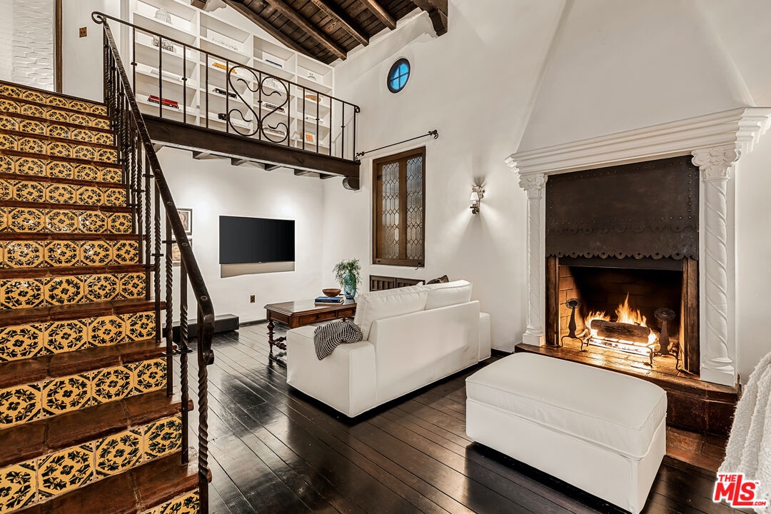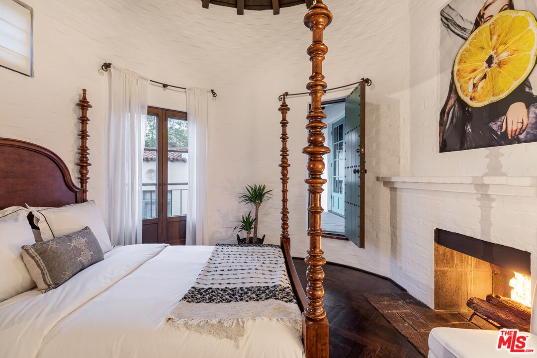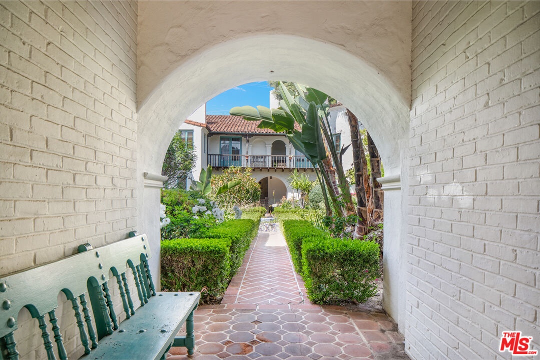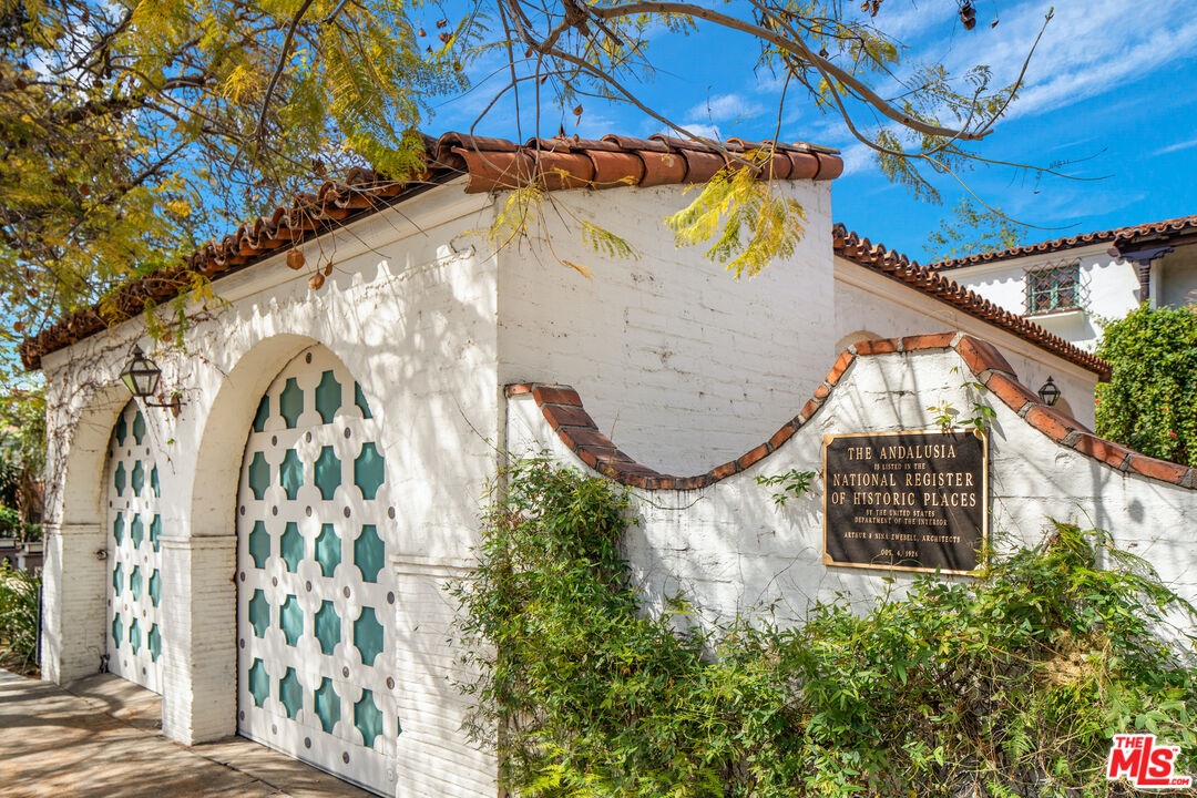 An iconic Los Angeles residence, The Andalusia, is a stunning example of Spanish Colonial Revival architecture at its finest. This exceptionally rare offering, The Zwebell Residence, is widely regarded as the premier townhouse within the intimate eight-unit building. Storied to be designed by renowned architects Arthur and Nina Zwebell as their personal home, it is rich in character and architectural significance. The residence features two spacious bedroom suites, a dedicated office, three wood-burning fireplaces, soaring ceilings, thoughtfully integrated built-ins, and multiple charming patios. A truly distinctive highlight, the building's only rotunda serves as the primary bedroom suite, creating a dramatic and unforgettable living space. This one-of-a-kind home has been extensively photographed, published, and celebrated. This highly sought after celebrity enclave was placed on the National Register of Historic Places in 2003. Ideal as a pied-a-terre, creative retreat, or full-time residence, it offers a rare blend of artistry and livability. Recently, the current owner completed a meticulous renovation, honoring the home's historic integrity with period-correct details and top-tier craftsmanship throughout. Nestled within a lush garden courtyard featuring a tiled fountain and communal fireplace, the property evokes the romance and charm of a bygone era. Step inside and be transported to 1926, an extraordinary living experience that must be felt to be fully appreciated.