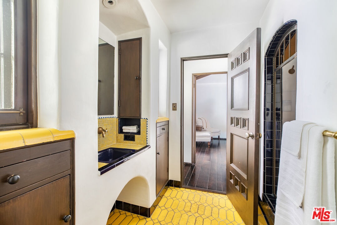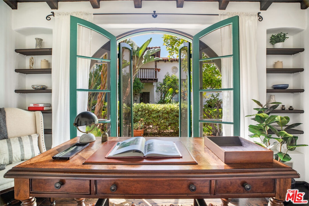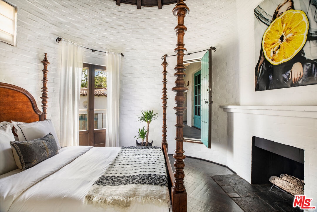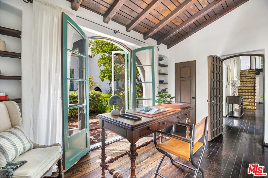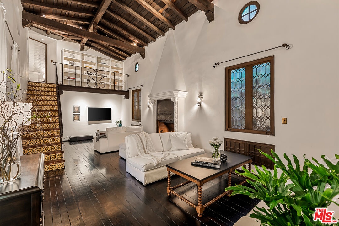 An iconic Los Angeles residence, The Andalusia, is a stunning example of Spanish Colonial Revival architecture at its finest. This exceptionally rare offering, The Zwebell Residence, is widely regarded as the premier townhouse within the intimate eight-unit building. Storied to be designed by renowned architects Arthur and Nina Zwebell as their personal home, it is rich in character and architectural significance. The residence features two spacious bedroom suites, a dedicated office, three wood-burning fireplaces, soaring ceilings, thoughtfully integrated built-ins, and multiple charming patios. A truly distinctive highlight, the building's only rotunda serves as the primary bedroom suite, creating a dramatic and unforgettable living space. This one-of-a-kind home has been extensively photographed, published, and celebrated. This highly sought after celebrity enclave was placed on the National Register of Historic Places in 2003. Ideal as a pied-a-terre, creative retreat, or full-time residence, it offers a rare blend of artistry and livability. Recently, the current owner completed a meticulous renovation, honoring the home's historic integrity with period-correct details and top-tier craftsmanship throughout. Nestled within a lush garden courtyard featuring a tiled fountain and communal fireplace, the property evokes the romance and charm of a bygone era. Step inside and be transported to 1926, an extraordinary living experience that must be felt to be fully appreciated.