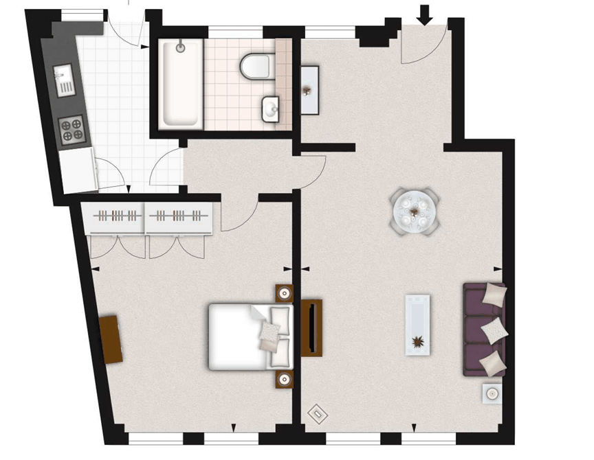 Newly Refurbished Fifth-Floor One Bedroom Apartment with Porter & Gardens