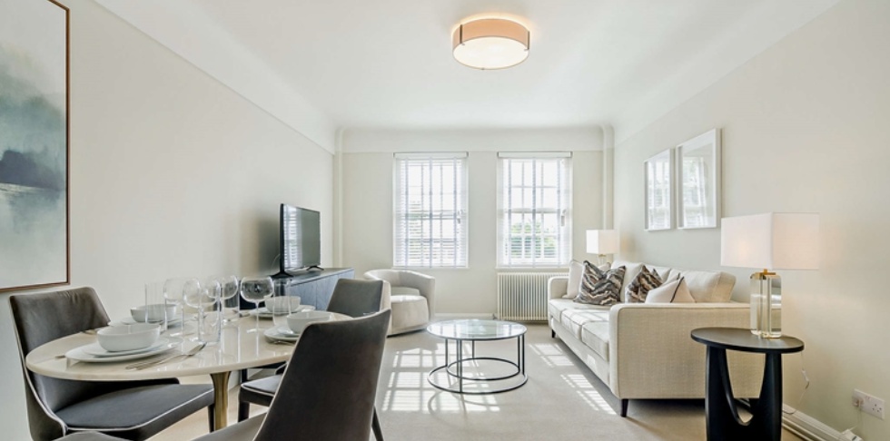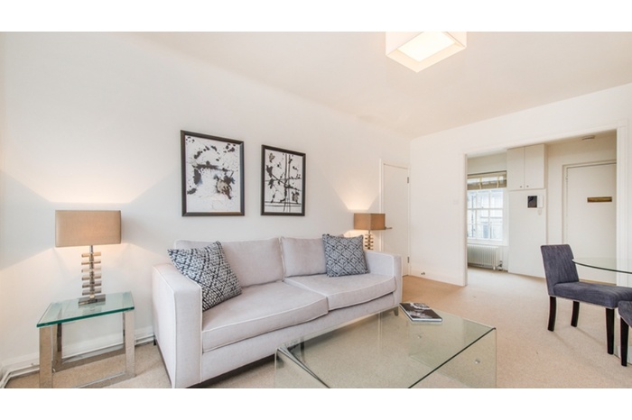 A newly furnished and beautifully re-decorated one-bedroom apartment located on the fifth floor of a charming period mansion block. Spanning 578 sq ft, this well-presented home offers a bright and comfortable living space, ideal for modern city living.