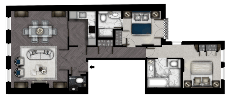 An elegant and spacious two-bedroom apartment set on the second floor, extending to approximately 854 sq ft and enjoying charming rooftop views towards Hyde Park. This beautifully designed home blends period character with high-end contemporary finishes, offering an exceptional standard of living.
