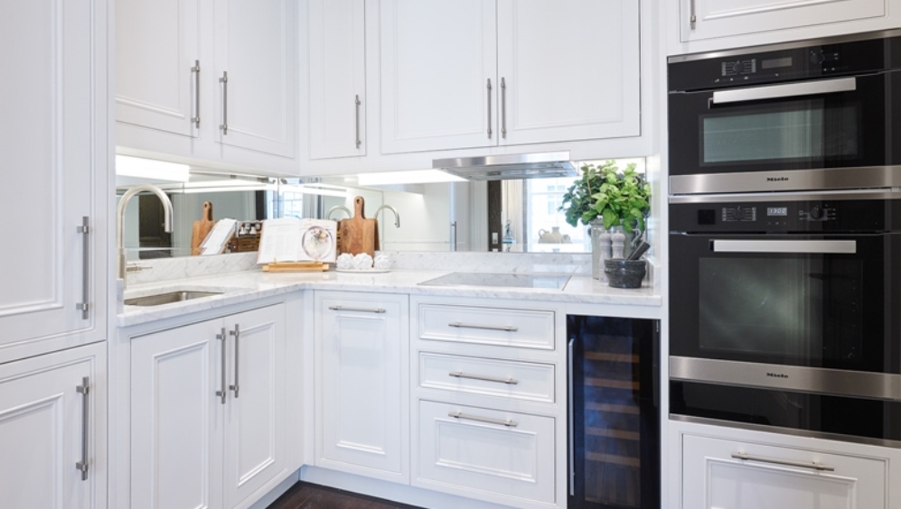 The property opens into a generous reception room, flooded with natural light from three large windows, seamlessly connected to a stylish kitchen via bifold doors—perfect for both entertaining and everyday living. The dark oak floored kitchen is exquisitely appointed with Tuscan Calacatta marble worktops, bespoke hand-built units, and a full suite of integrated Miele appliances, alongside a Quooker hot and cold tap and wine fridge.