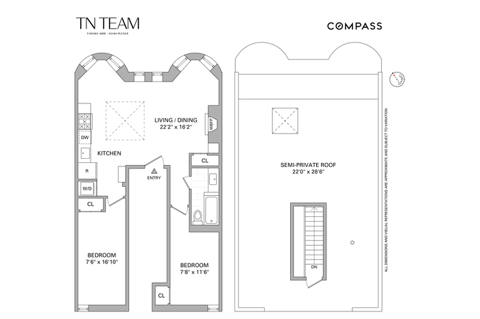 The kitchen is equipped with a Frigidaire refrigerator, Bosch oven and stove, Miele dishwasher and Sharp microwave, as well as a windowed dining-nook. Up just one flight is the semi-private roof deck that is shared with the neighboring unit and offers stunning skyline views of Brooklyn and Manhattan.
