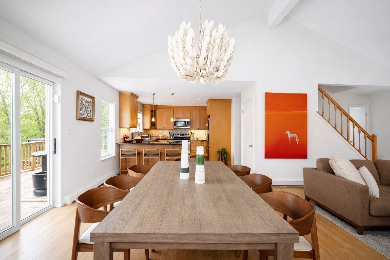 The home features two bedrooms and two full bathrooms, along with an office/Den complete with a pull-out queen-size sleeper sofa for additional guests. Open concept living room , dining room and a spacious kitchen create and inviting layout for both relaxing and entertaining. Set on 1.2 Acres of property with sun-drench deck and pool , providing a serene outdoor space for summer living.