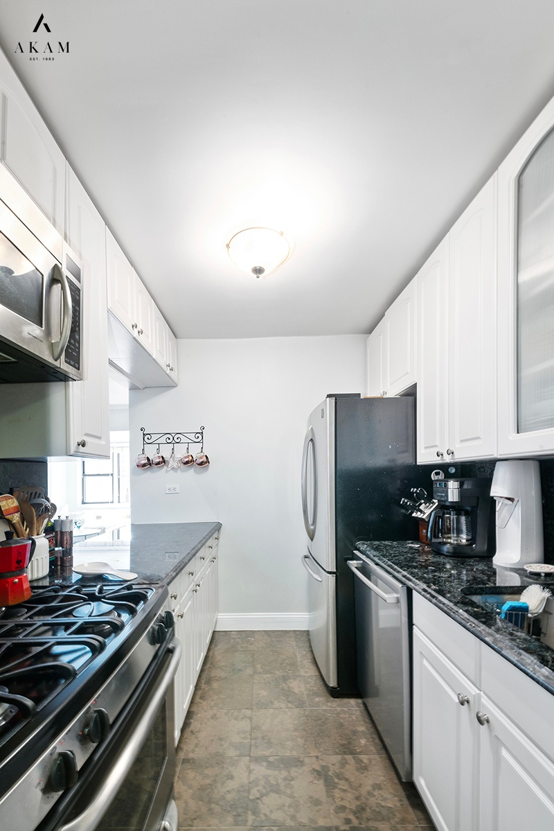 Feels like a real home! Introducing this spacious, south-facing corner apartment, where modern living meets convenience, style and old-world charm. The large, sun-drenched living room features open city views that you are sure to enjoy every day. Step into your separate, yet partially open kitchen, a chef's dream with granite counter-tops, ample cabinet space and updated stainless-steel appliances including a Bosch dishwasher. And for those who appreciate the finer things, just outside the kitchen you'll find a wine cooler and mini-bar, perfect for storing your favorite vintages and entertaining guests. The king-size bedroom has 2 exposures, a ceiling fan, large double closet and enough space for a home office. The recently renovated windowed bathroom has a granite vanity and ceramic tiled floors. Other features include extra high ceilings, through the wall A/C in the living room and bedroom, Parque floors and 2 extra closets in the hallway. Don't miss the chance to call this stunning apartment your new home. The Leslie House is a luxury co-op building with 24 hour doormen, a lovely roof deck, laundry room, live-in super and garage. Located in the heart of Midtown-East (E 54th/3rd Ave) and steps to the E, M and 6 trains. 24 hour notice needed for showings.