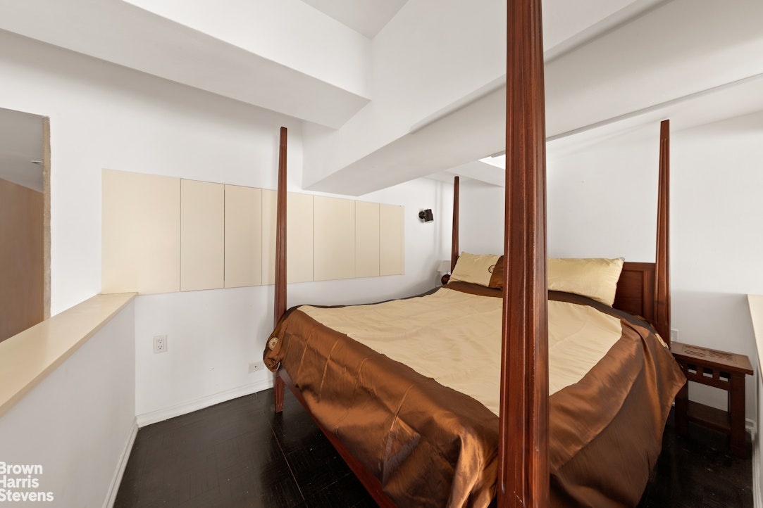 This exquisite residence combines pre-war charm with modern sophistication, offering a truly unique living experience. As you step inside this beautifully maintained home on the 4th floor, you'll immediately be greeted by the solid red oak hardwood floors, with a very nice finish and shine and easy to maintain. The apartment includes floor to ceiling cupboards and wardrobes closets, and a vast amount of storage, including under the sleep loft/mezzanine by the stairs.