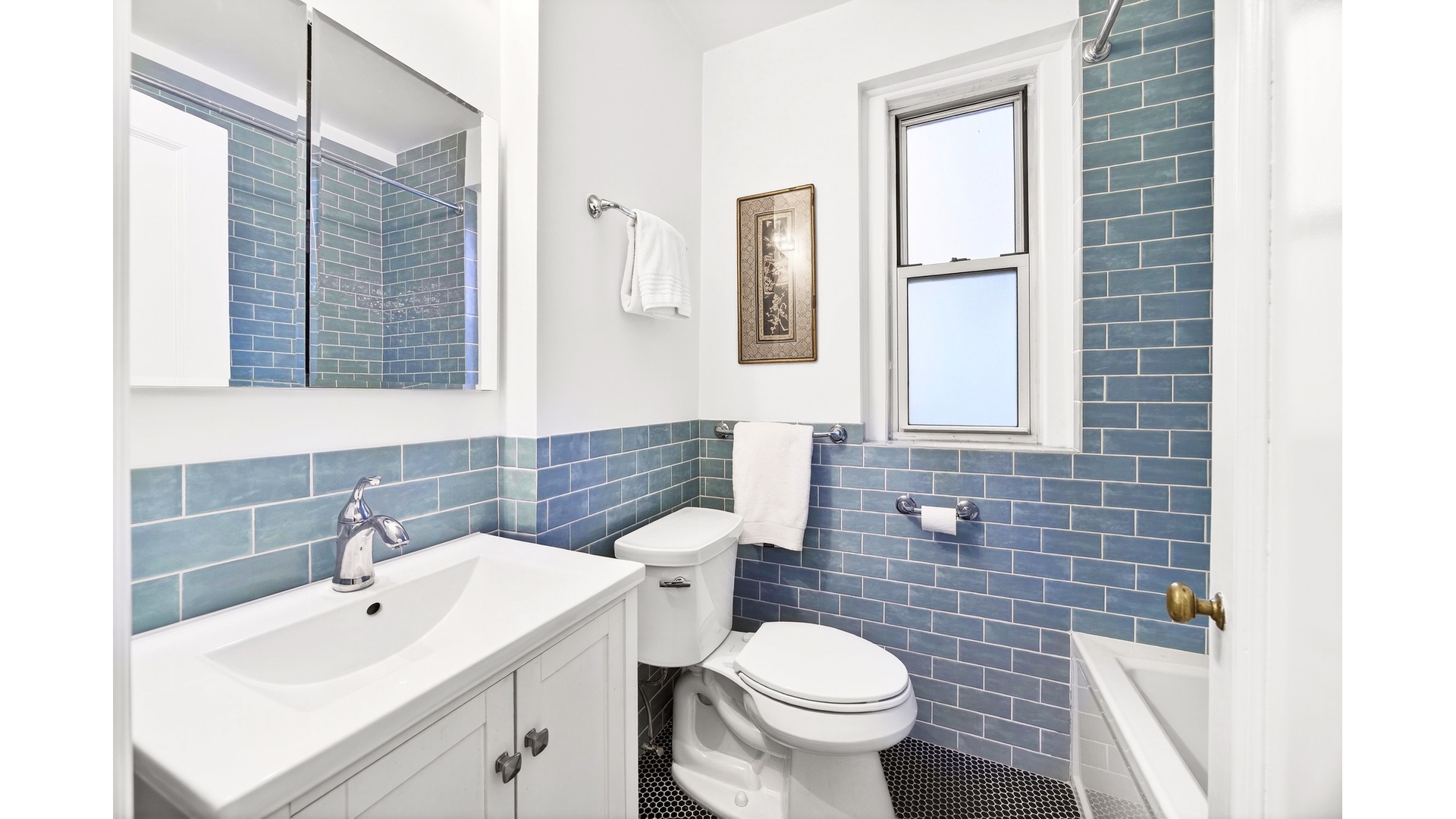 The bathroom also has a window and was renovated with lovely subway tiles.