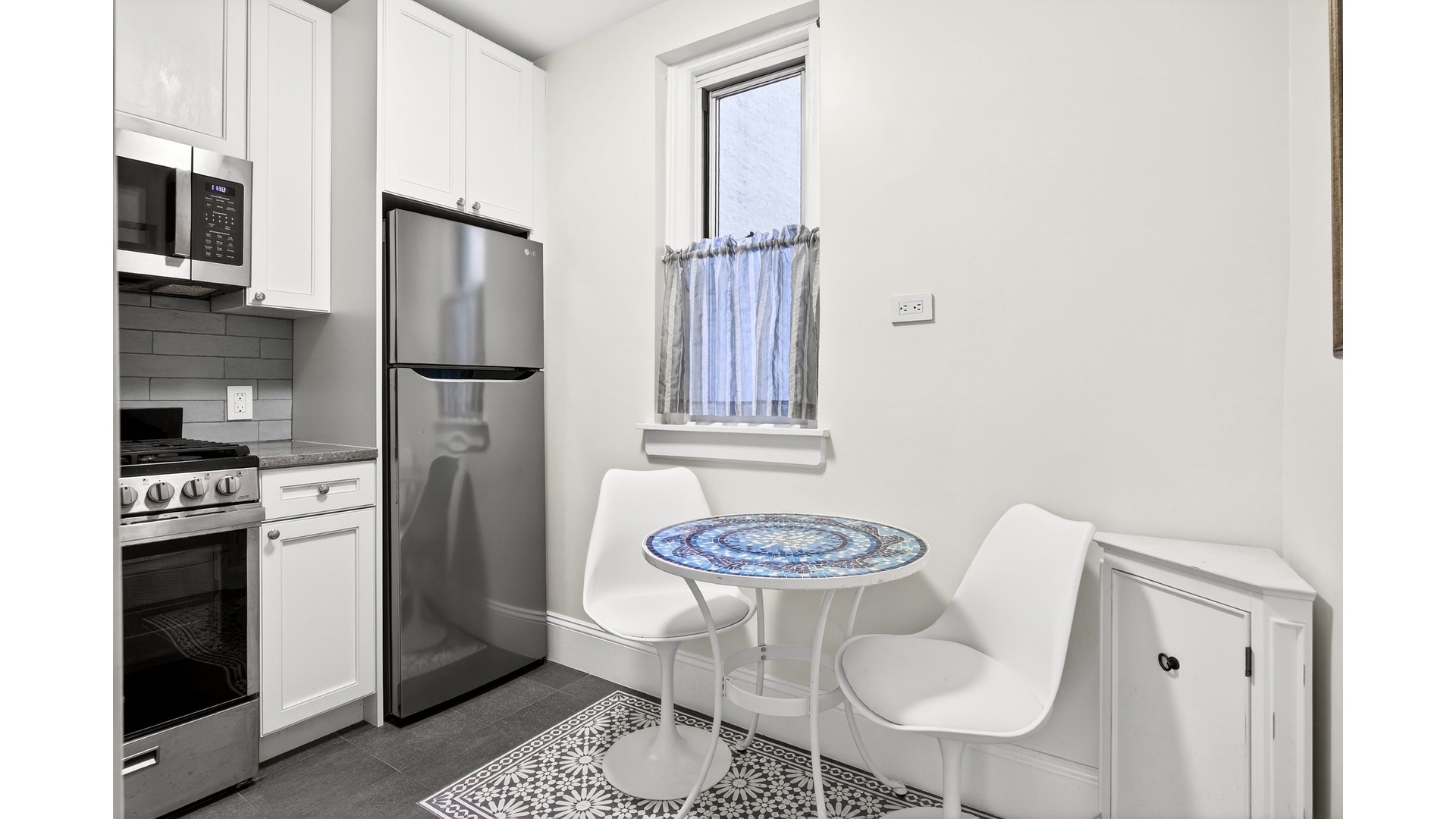 This mint, one-of-a-kind sun-flooded home has an elegant living and dining area, a windowed eat-in kitchen with a stainless LG refrigerator and microwave, and two south-facing, spacious bedrooms.