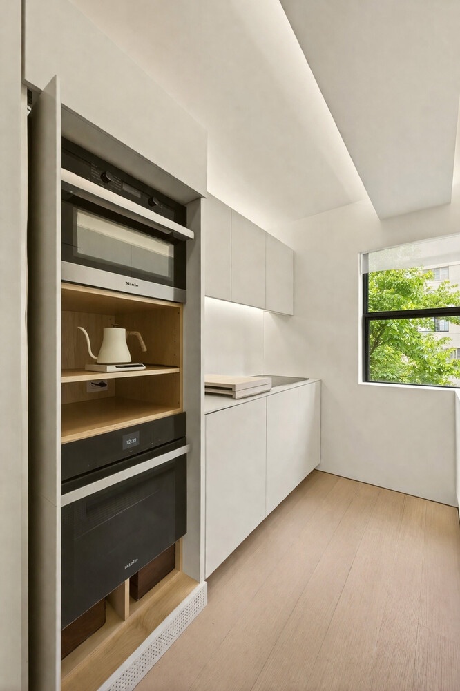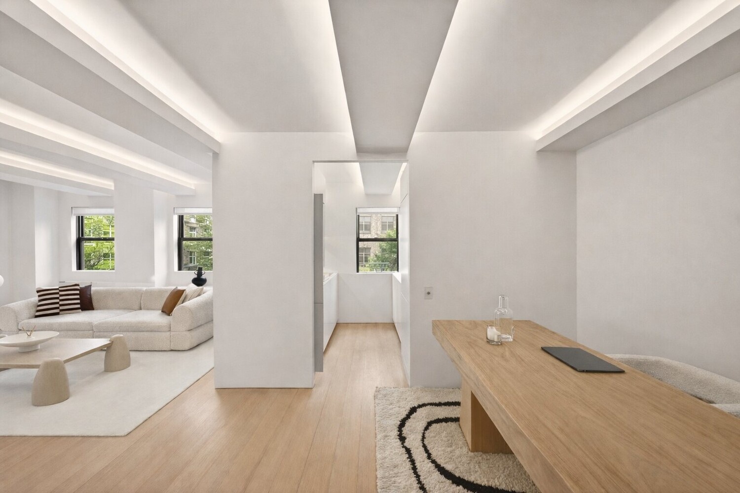 Ultramodern and style converge in this thoughtfully renovated Scandinavian-inspired residence at 235 E 49th Street, where pre-war character meets refined modern design by S.K. Mukherjee. This move-in-ready home showcases meticulous craftsmanship with clean architectural lines, hidden ambient lighting, and custom finishes such as flush-wall outlets and shadow gaps that create a seamless, gallery-like aesthetic. The windowed kitchen is both functional and visually striking, featuring fully upgraded Miele appliances, Corian surfaces, and custom matte lacquer cabinetry, while the spa-like bath is finished in Turkish limestone with radiant heated floors, a walk-in shower, and premium fixtures. Designed for comfort and efficiency, the home includes upgraded HVAC discreetly built into custom millwork and seven well-planned closets offering exceptional storage. With three exposures-South, West, and North-the residence enjoys an abundance of natural light along with views of gardens, townhouses, and the surrounding cityscape. Located in a boutique co-op with a roof deck, attentive staff, and flexible purchasing options, this property is well-suited for discerning buyers seeking a design-forward primary residence or pied-à-terre in Midtown East.
