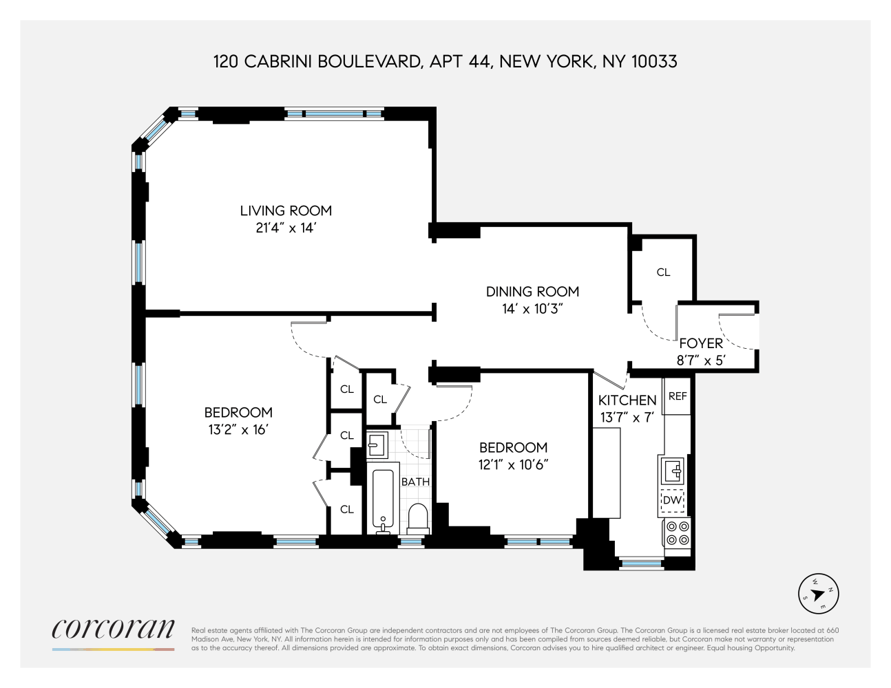 The embodiment of an active and welcoming community, Castle Village offers excellent amenities and social events. An oasis of calm in Upper Manhattan, the five-building co-op complex, designed by George F. Pelham Jr. and completed in 1939, is situated on 7.5 acres of manicured lawns and plantings with sitting areas located throughout. Co-op amenities: fitness room with Hudson River views, laundry room in each building, indoor and outdoor play spaces, community garden, on-site garage (extra fee), storage cabinets (with a short wait list), bike storage, large community room for events that may also be rented for private parties, and stunning roof decks with views for miles. The co-op is pet-friendly with one dog permitted per apartment. Equipped with hi-speed internet, and Wi-Fi hot spots are located throughout the common areas for your devices. All windows were recently replaced with high quality energy efficient model. S ervice staff: on-site management, part-time doormen(7AM to 1AM), live-in super, handymen, porters, and 24-hour security guards . Restaurants, cafes, supermarkets, banks, cleaners, pharmacies, spas, and many other services are minutes away. 80% financing permitted. With the A-train and #1-train nearby, you will be delivered to midtown in about 20 minutes. With the Cloisters Museum, Fort Tryon Park, and Riverside Park nearby, Hudson Heights is a vibrant community that has so much to offer!