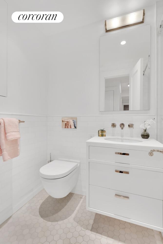 The residence boasts three generously sized bedrooms and two luxurious bathrooms. The oversized primary suite, with two walk-in California closets, offers an en-suite bath with calacatta marble counters and flooring, as well as excellent storage options. The primary bath includes a Toto bidet toilet, Duravit sink, featuring Waterworks and Restoration Hardware fixtures plus a 42" custom vanity.
