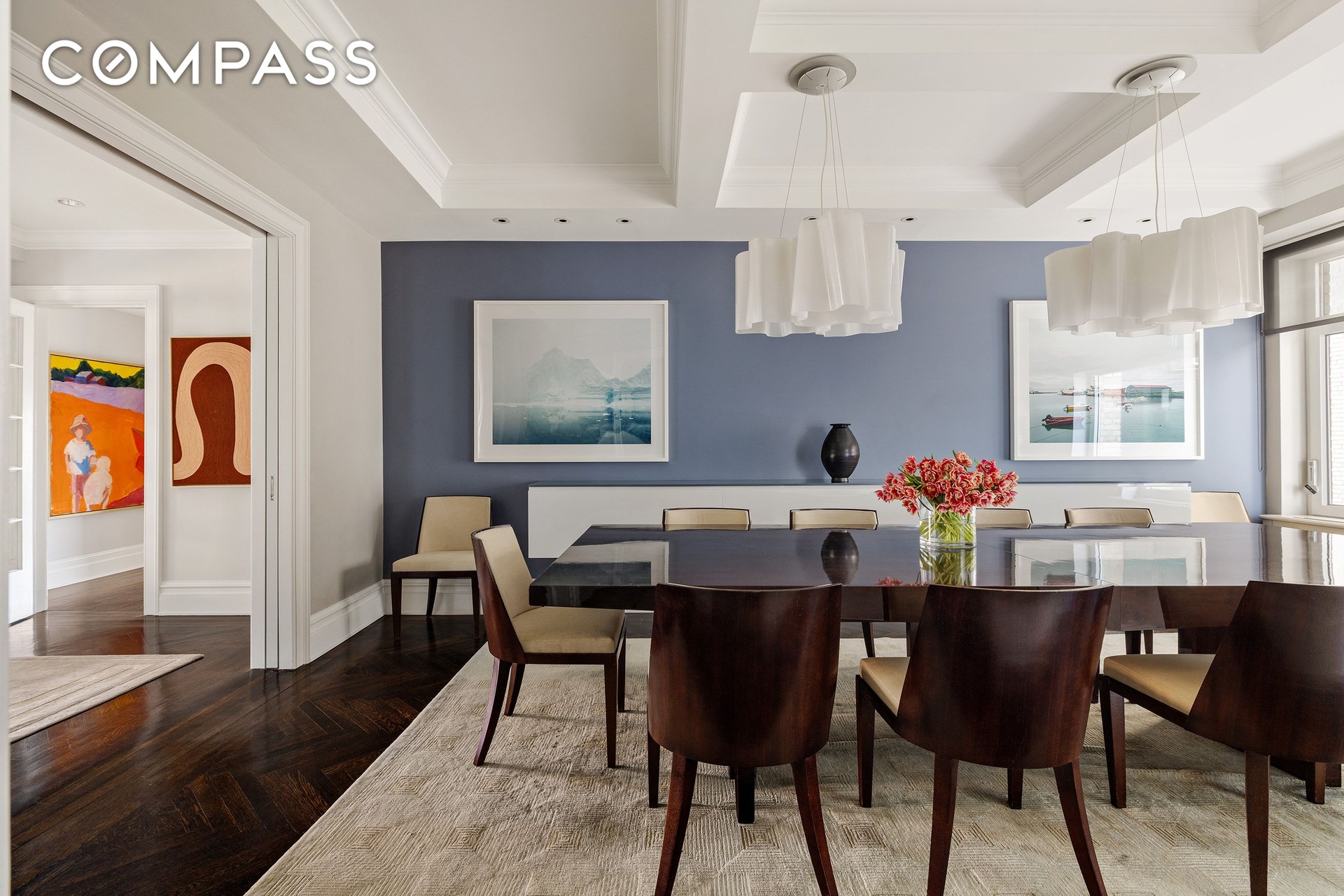 Make this masterfully renovated and exquisitely designed 8-room apartment your new home. The grand scale layout, spanning approximately 3,000 square feet, offers 4-5 bedrooms and 3.5 bathrooms enhanced by beautiful contemporary and classic finishes, prewar details, hardwood floors, tall beamed ceilings and views of Riverside Park and the Hudson River The sun-flooded spacious living room with an adjacent library/den and formal dining room are joined by the the central entrance gallery, creating a wonderful expanse suitable for relaxed daily life and elegant entertaining. Additional features include a large windowed eat-in chef’s kitchen outfitted with sleek custom cabinetry, stone countertops and top-notch appliances.