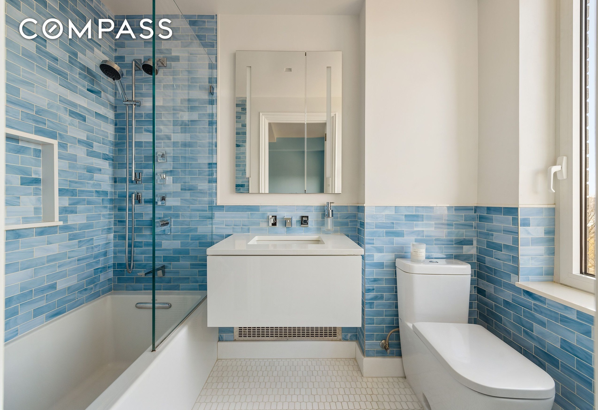 Four sizable bedrooms offer optimal tranquility and privacy. The corner primary bedroom suite boasts stunning river views, a king-sized layout with en suite bathroom featuring a walk-in shower and vanity. Two of the three secondary bedrooms have unobstructed sunny western outlooks and private baths. Skyline Windows, custom lighting and millwork, ample closet and storage space, and an in-unit washer/dryer add effortless ease and comfort to this refined and utterly serene residence.