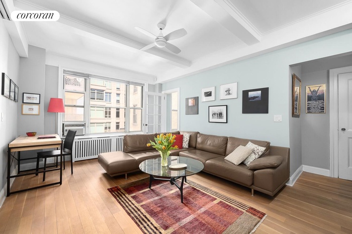 Nestled in the vibrant Upper West Side is this charming, high-floor, alcove studio #15E in the storied Majestic building at 215 W. 75th Street. During Prohibition, this prewar beauty hid a labyrinth of hidden stairways and secret rooms comprising famed madam Polly Adler's brothel. It had unique touches like an Asian-inspired mah-jongg room and a bar resembling the recently discovered King Tut's tomb. Now, 215 W 75th St #15E offers the perfect blend of classic appeal and modern convenience in the same, charming and utterly central location.