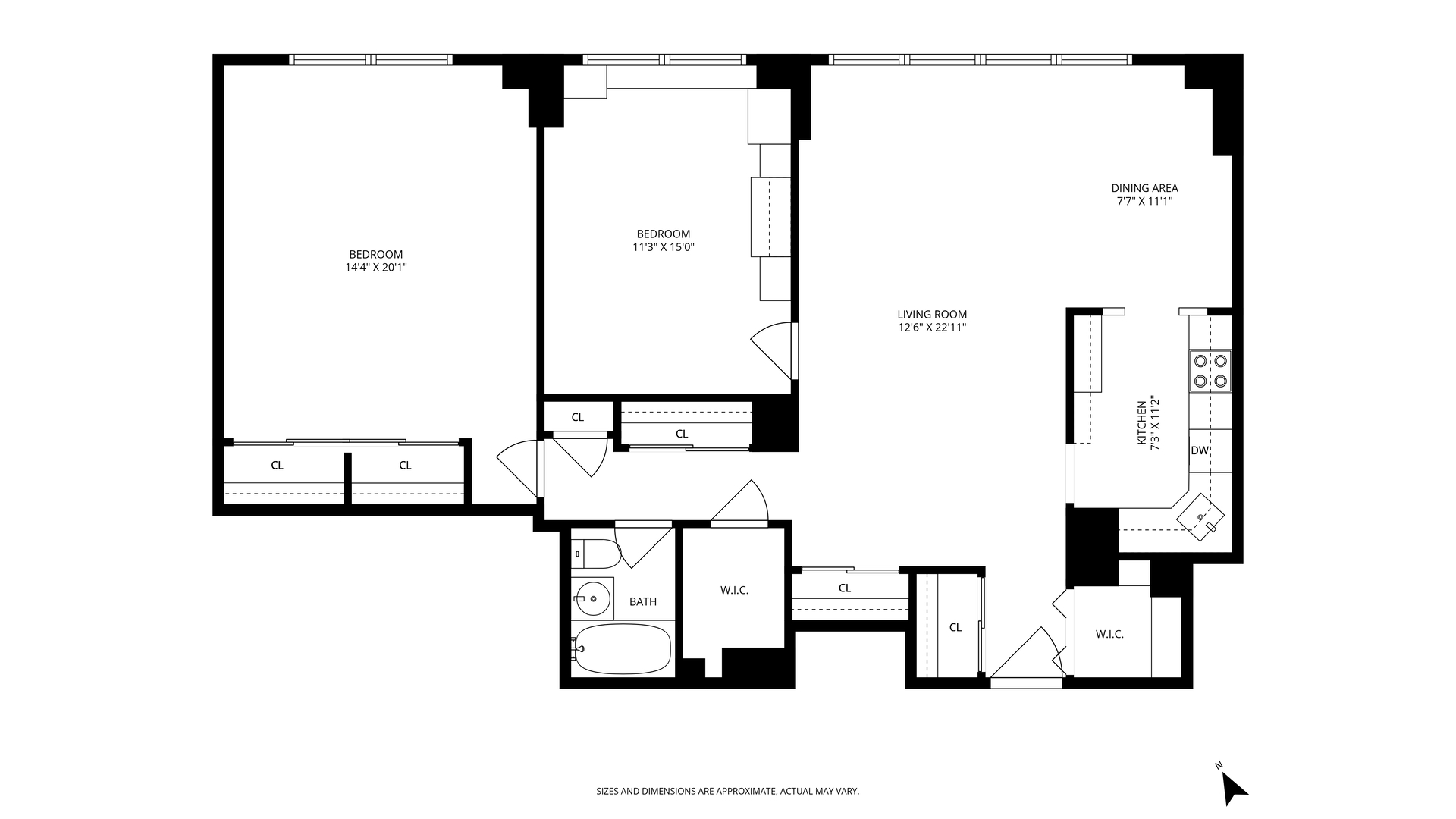 Massive two-bedroom, one-bath home with a separate dining area in the highly desirable Lincoln Towers.