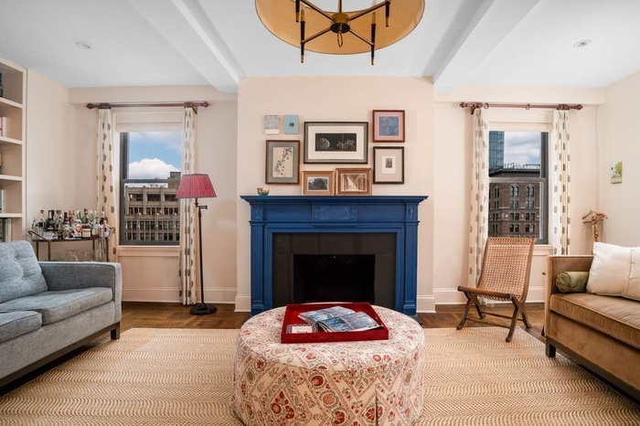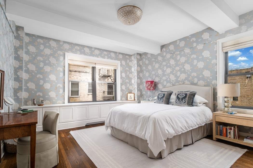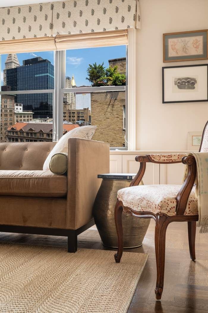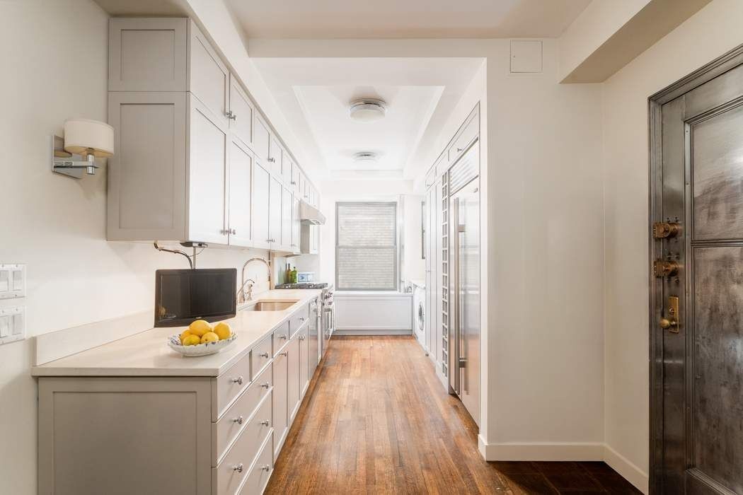 An apartment with a gracious flow, enter into an expansive foyer which serves at an ideal dining room before heading through the arch to the bright, corner living room with woodburning fireplace and open views to the west; perfect for entertaining or for a quiet, cozy evening by the fire with a book from the custom millwork creating an elegant wall of books. There are only five apartments with this coveted layout in the building apartment 17B being the highest floor.