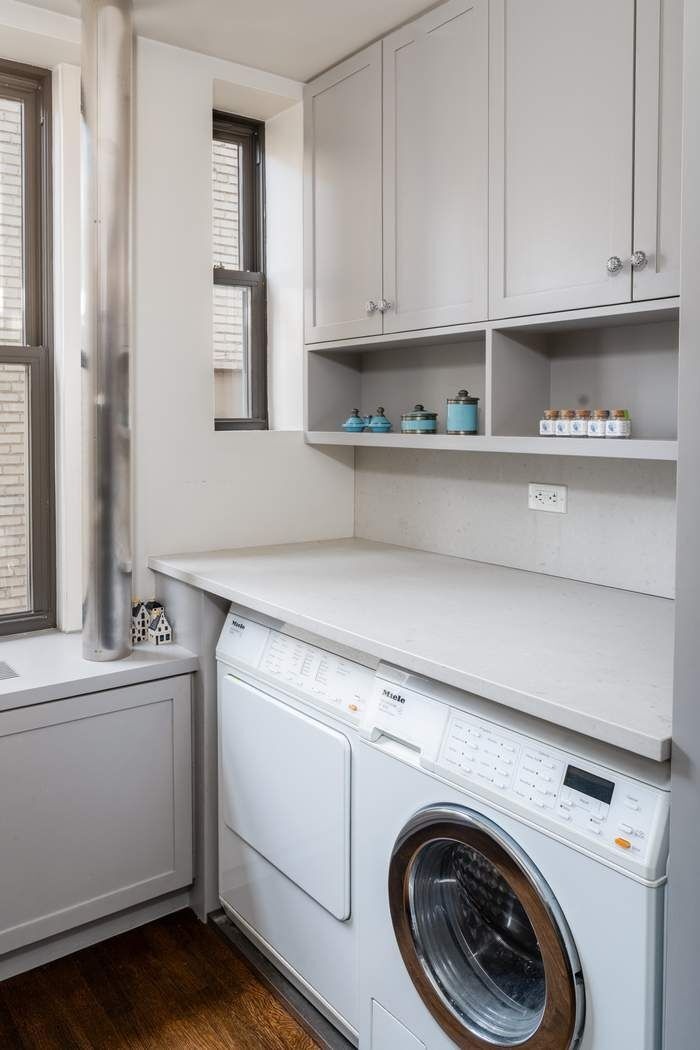 The large windowed eat-in chef's kitchen has Subzero, Wolf and Miele appliances. Side by side washer/dryer with work area above. Abundant storage.