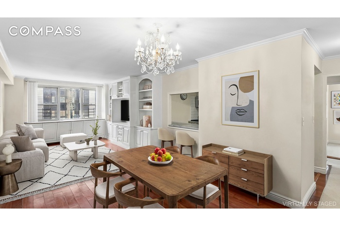 Best value for a 3 bedroom on the Upper East Side! This beautifully appointed corner apartment offers three spacious bedrooms and two full bathrooms. A welcoming entry foyer flows into an expansive living area, where oversized east-facing windows fill the space with natural light. The open kitchen has been thoughtfully renovated, featuring Viking appliances including a refrigerator, range and microwave, a Bosch dishwasher, Marble countertops, a classic subway tile backsplash, and a breakfast bar that’s perfect for casual dining. The corner primary bedroom is generously scaled with exposures to both the east and south, offering great light throughout the day. It includes an en-suite bathroom and well-designed custom cabinetry that provides exceptional storage. Additional features of this home include 7 closets, one being a large walk-in, custom built-ins in the living room and primary bedroom, and hardwood floors. 333 East 79th Street is a well-maintained full-service cooperative. Residents enjoy the convenience of a 24-hour doorman and live-in super. Amenities include a fitness center, children’s playroom, conference room, private garage, bike storage, laundry room, additional storage, and a landscaped courtyard shared with the adjacent building. An added bonus is Agata & Valentina just downstairs! Pied-à-terres are considered on a case-by-case basis, and the building welcomes pets up to 50 pounds with board approval, as well as washers/dryers, guarantors and co-purchasers. Assessment of $445.56/month for new Elevators ending February 2027. Photos are virtually staged.