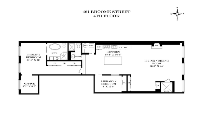 The epitome of stylish Soho living, Unit #4 at 461 Broome Street is a renovated full-floor loft residence currently configured as a two-bedroom, two-bathroom residence.