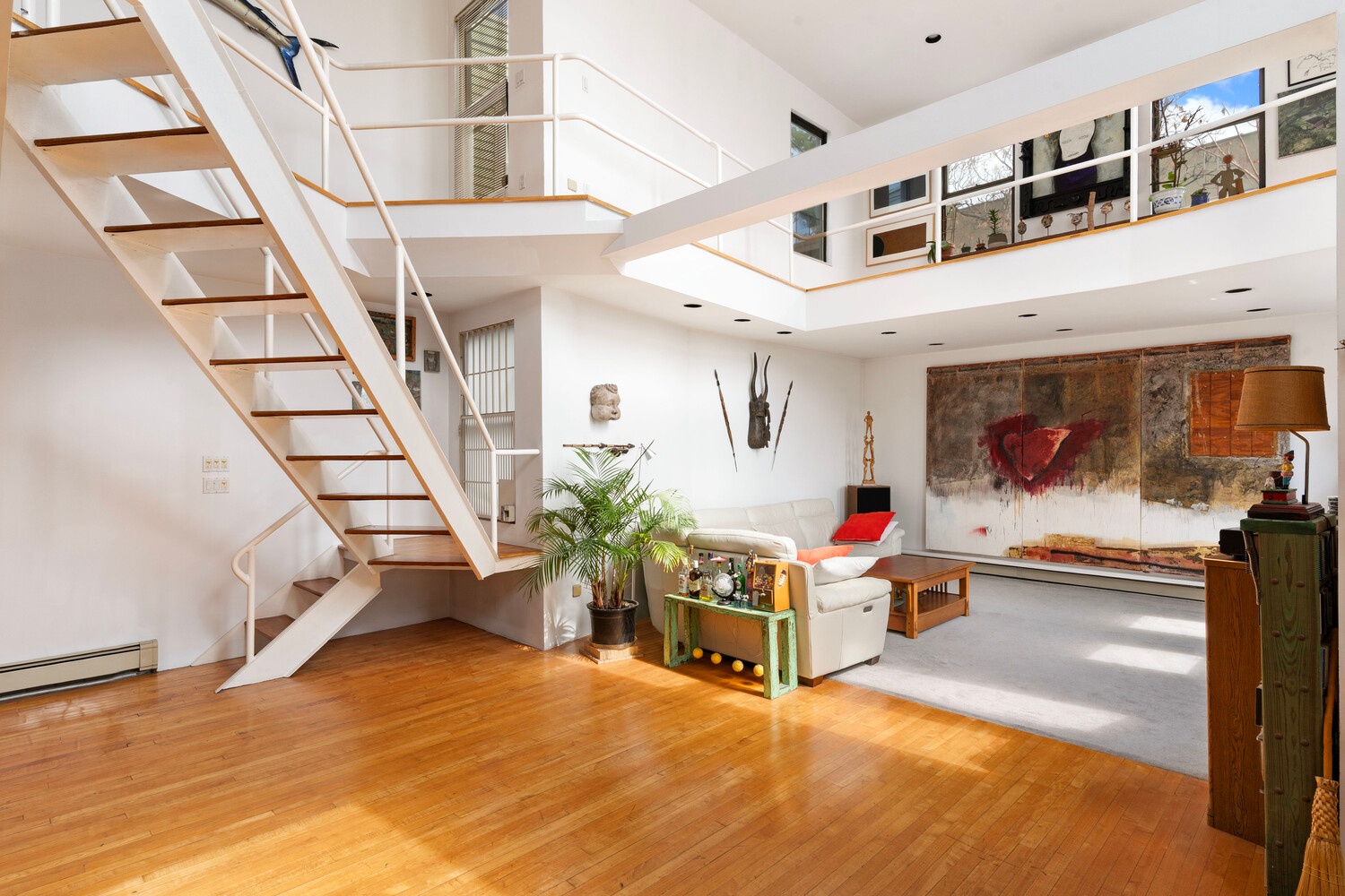 Spanning 6,000 square feet, this expansive two-family residence offers a rare blend of scale, light, and flexibility. The owner's duplex is a true standout, featuring soaring 20 foot ceilings, a dramatic double-height living space, and over 60 oversized windows that flood the home with natural light throughout the day.