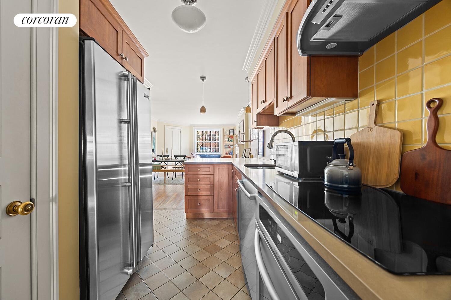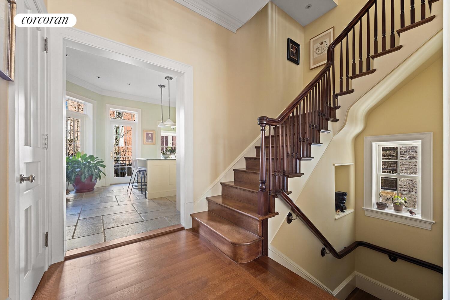 On the garden level, the apartment offers an appealing and private layout with a large front living room, pass-through kitchen, ample bedrooms, full bath, and direct access to the garden. It is well suited for rental income, guests, or multigenerational living. Sound insulation between the units maintains privacy and makes the house impervious to street noise. Both units also have separate access to the basement.