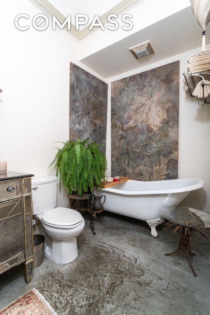 Enter via a new, keyless, ADT security system through a separate, private entry under the stoop to the former location of a well-known bookstore, now a full two bedroom, one bath and full kitchen and sitting room independent apartment as a solid income-producing feature or owners pied a terre. The guest suite is currently registered with the city as a legal, short-term rental by the "Super Host" owner. The kitchen has a full-size Whirlpool refrigerator, a Bertazzoni gas stove, microwave, and direct access to the entirely private garden with patio, outdoor dining and grill..