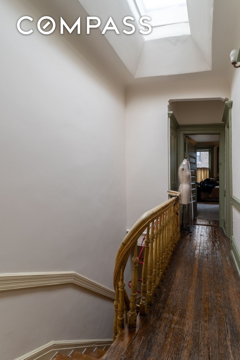 426 West 160th has been gently restored and improved, while maintaining the original details, coved ceilings, baseboards, wainscoting, and wooden window trim, along with original cornices, doors, pocket doors, decorative fireplaces, and old hardware. This is a house of books with numerous well-built libraries and cases. Three rooftop skylights illuminate the stairwell and both top-floor baths. Built 18'x50' on an 18'x100' lot, this home features 6 bedrooms, 5 full baths, a full kitchen, and butler's pantry. Four living floors plus the full-footprint cellar granting an additional 925 square feet for a total of 4,625 sf. The facade has been resurfaced and new rooftop solar panels are integrated with a sell-back to Con-Ed.