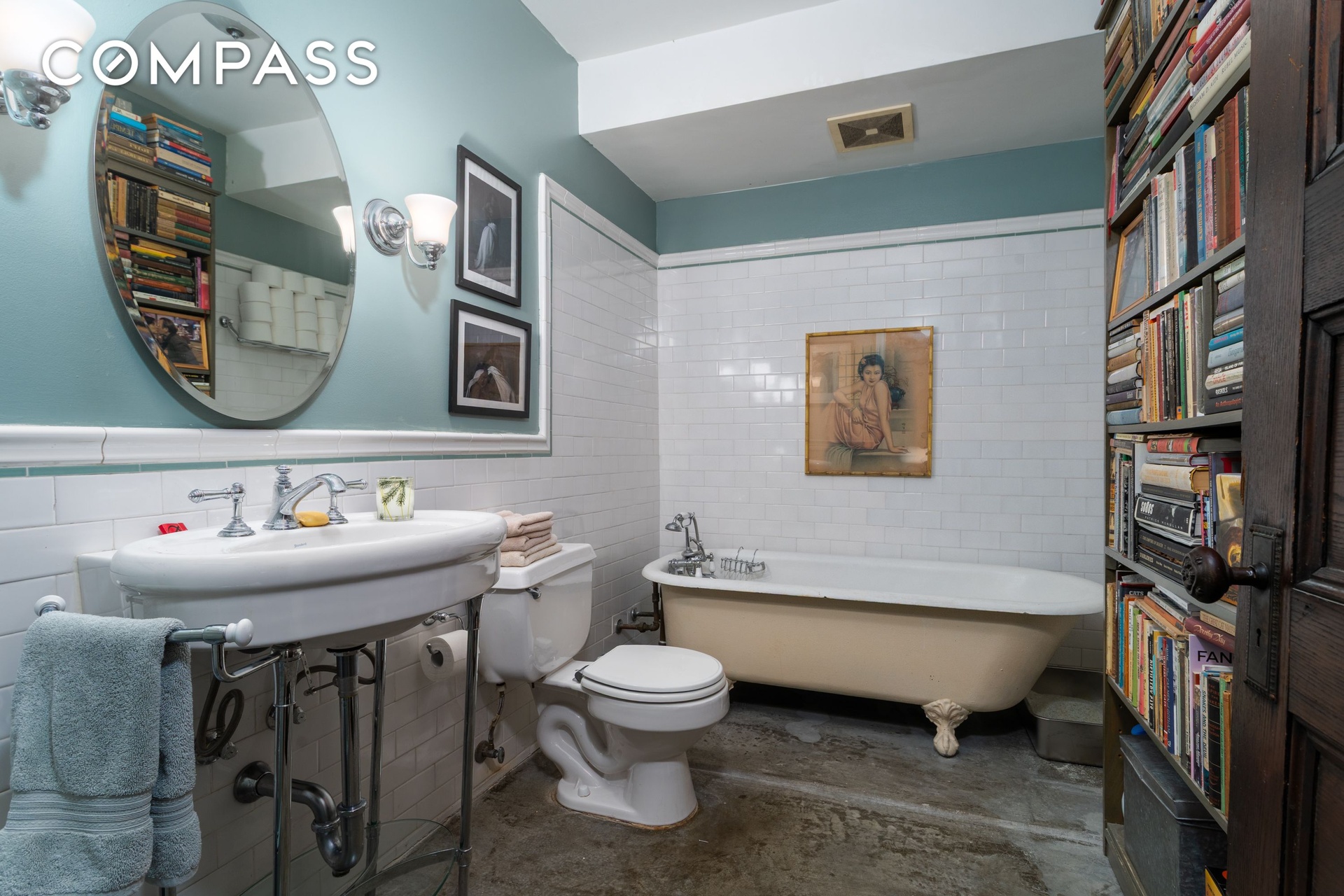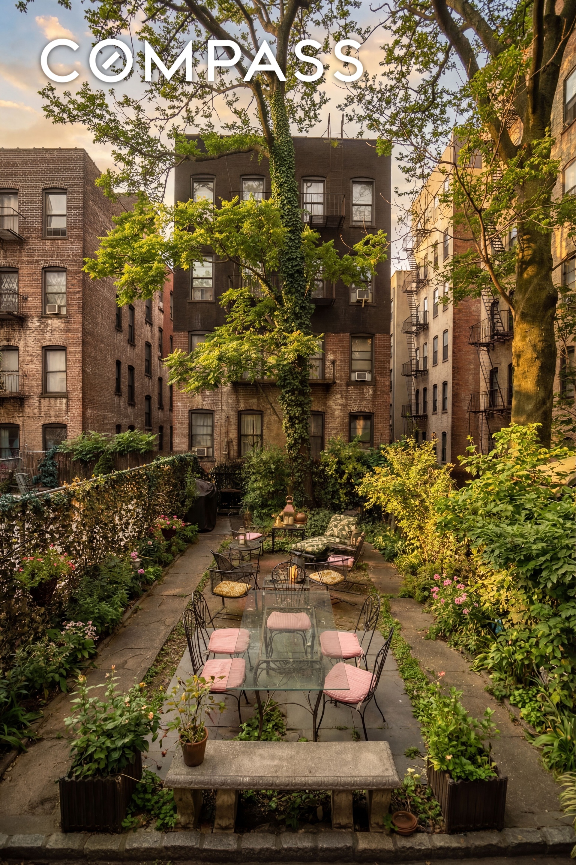 The garden room overlooks a 900 square foot garden, viewed through a large window, enjoy easy garden access through a new metal and glass door with a security gate, screens, and a seasonal storm window. The perfect, Victorian "Lady's Specimen Garden" has been lovingly gardened by the owner so that it blooms each year with little coaxing or expense each spring. The garden has a newly graded slate patio with a drain. The garden's tree canopy has been pruned and lifted, allowing more light. Awaken mornings to the rare sound of songbirds in Manhattan and sit in your own private garden listening every Sunday afternoon to Sugarhill's own living treasure, Marjorie Elliot's "Parlor Jazz" in private.