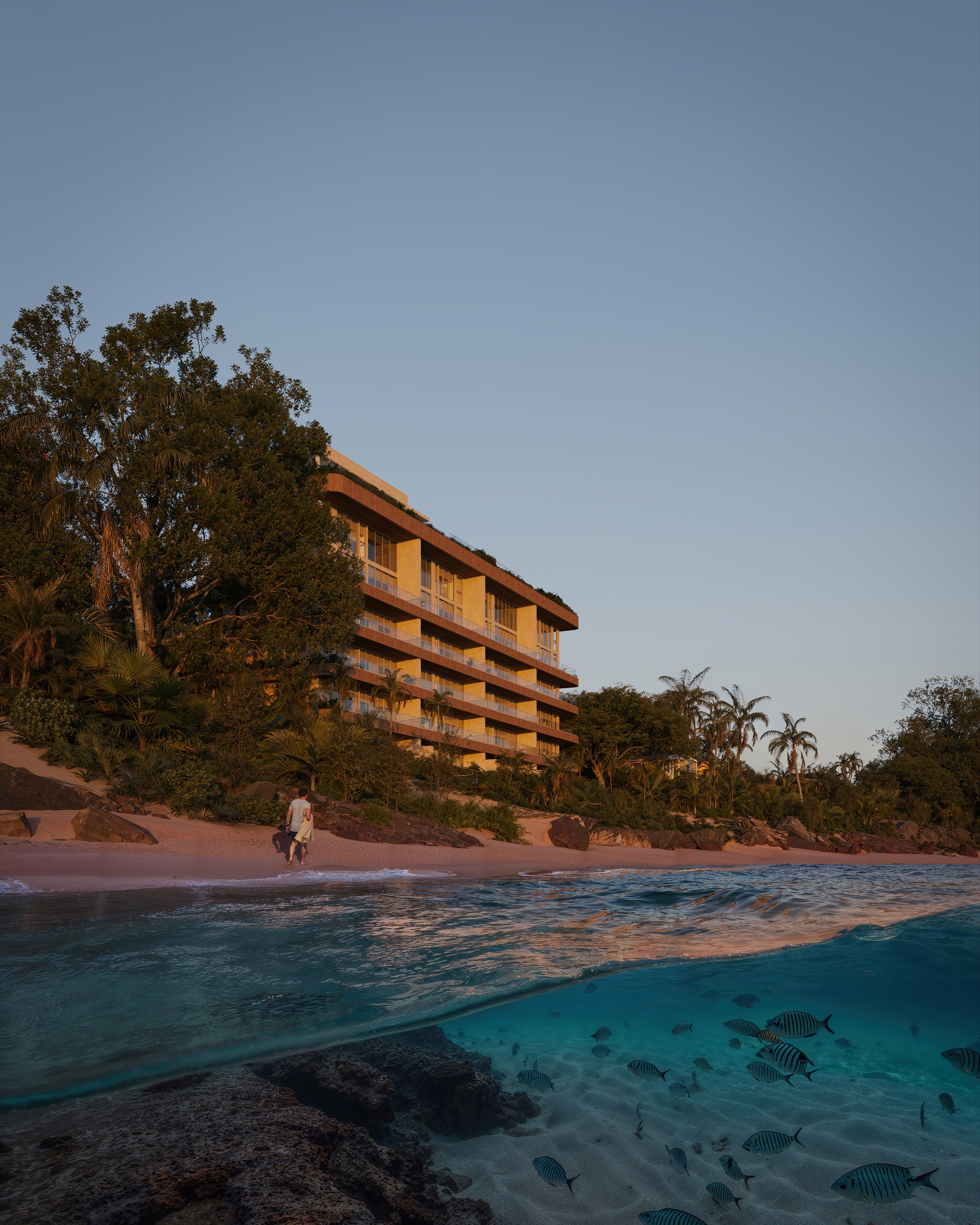 At the heart of Luna Mare is a rooftop sanctuary conceived as a private members-style retreat, elevated above the shoreline and reserved exclusively for residents. From this vantage point, uninterrupted ocean and horizon views unfold in every direction.