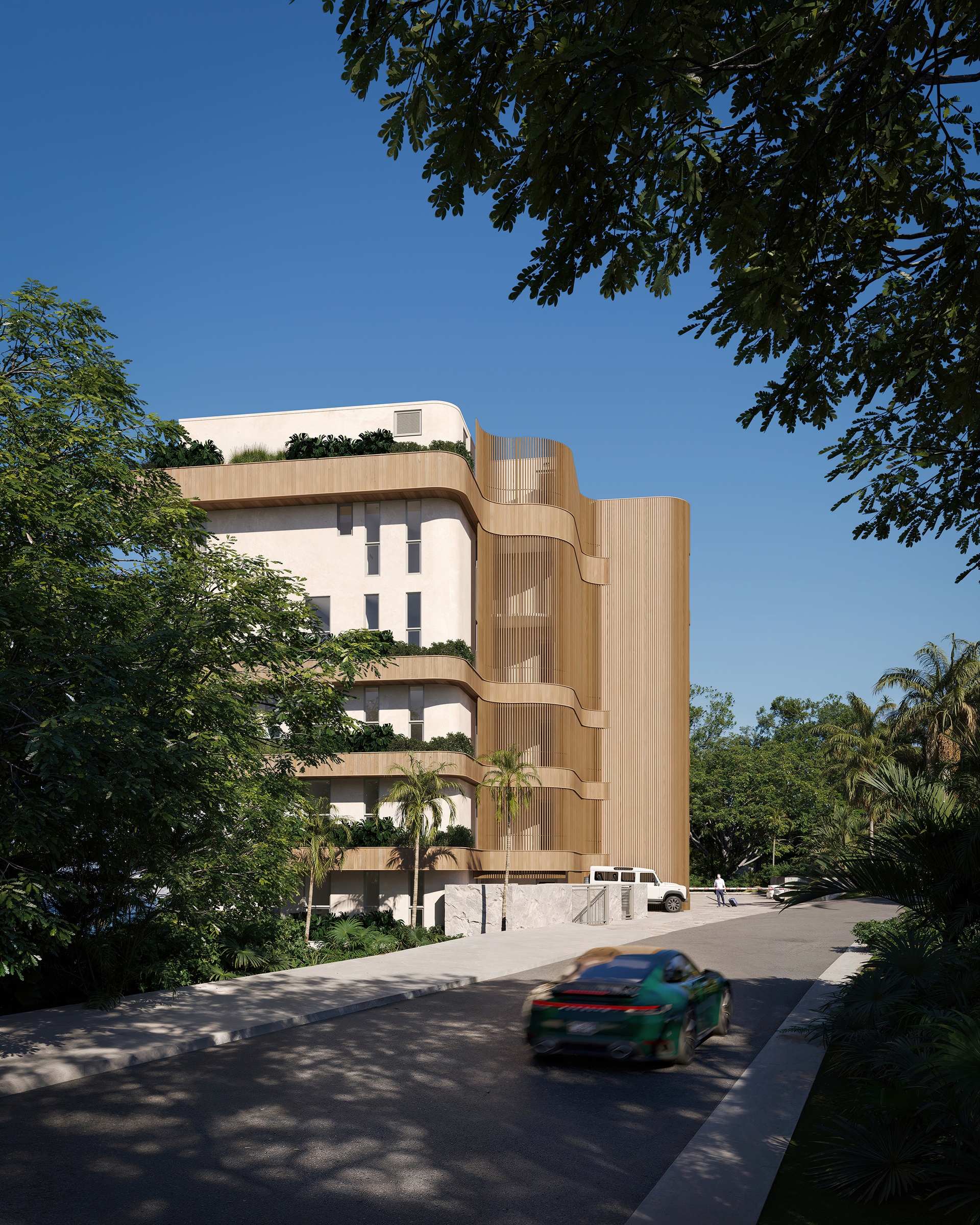 Generous terraces extend the living spaces outward, creating effortless transitions between interior refinement and coastal living. Select ground-floor residences feature private plunge pools, while the limited Sky Residences, exclusive duplex penthouses, offer double-height living spaces and commanding panoramic views across the Caribbean Sea.