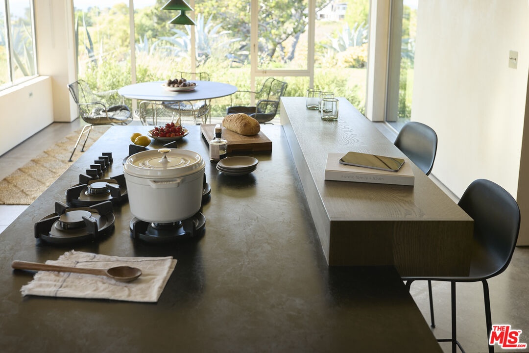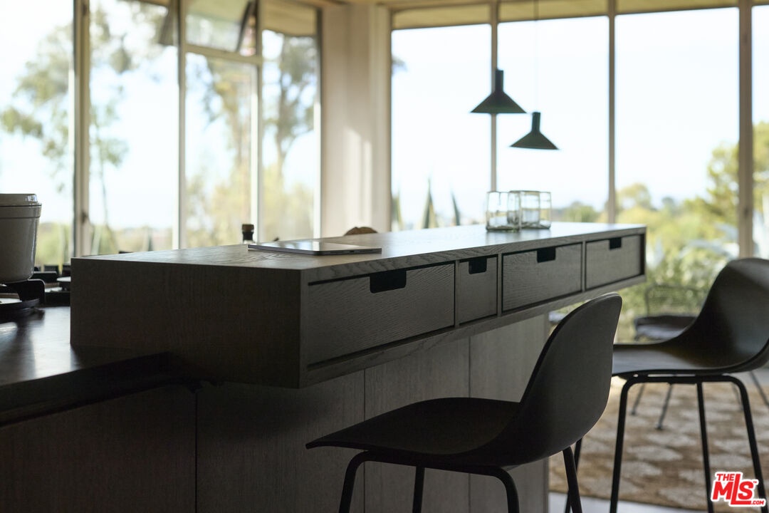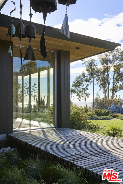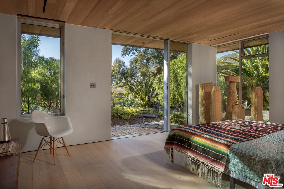 Once the home of legendary landscape designer Jay Griffith, this extraordinary property was rebuilt from the ground up and completed in 2023; a rare achievement that seamlessly honors its mid-century roots while delivering an entirely new level of craftsmanship and intention. Set within park-like grounds that embody Griffith's vision of living in harmony with nature, the home was designed with a singular purpose: to decompress, to quiet the mind, and to reconnect. Creatives feel it immediately. Mature trees, native plantings, and winding garden paths create a lush environment where architecture and landscape feel inseparable. Inside, vaulted wood ceilings and expansive walls of glass flood the interiors with natural light while opening to patios, gardens, and outdoor living spaces that dissolve the boundary between inside and out. Natural clay plaster throughout imparts a warmth and stillness that is rare and immediately felt. Every room is oriented toward the landscape, creating a Zen-like calm that visitors consistently describe as transformative. The craftsmanship throughout is exceptional and deeply considered: handcrafted yellow cedar screen doors offer privacy and gentle separation, handcrafted Japanese tile graces the bath areas, and fluted-glass pocket doors sourced from Italy add an understated sculptural quality. Bath fixtures by Agape and Bang & Olufsen speakers reflect the same commitment to quality without ostentation. At the heart of the home, a beautifully crafted Henrybuilt kitchen anchors the living spaces with sculptural cabinetry and integrated storage, while the informal eating area just off the kitchen creates an intimate, special space to gather and linger. Whitewater ocean views provide a stunning coastal backdrop, while the location places you adjacent to Malibu Equestrian Park, moments from Zuma Beach, and with easy access to the Zuma Ridge and Zuma Canyon hiking trails. Privacy, natural beauty, and the best of Malibu's outdoor life all in one extraordinary offering. A rare lease opportunity for those who understand that the finest homes don't just shelter, they restore.