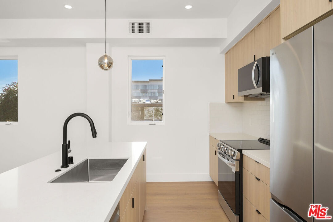 Modern townhome in the heart of Hollywood, steps from top restaurants, nightlife, and entertainment. This 3-story unit features a functional layout with a kitchen and living area on the main level and bedrooms on the top floor. Bright interiors with abundant natural light and a private, single-family home feel. Spacious bedrooms with en-suite bathrooms and ample closet space. Ideal for roommates or couples, with room for a home office. Prime LA location close to everything.