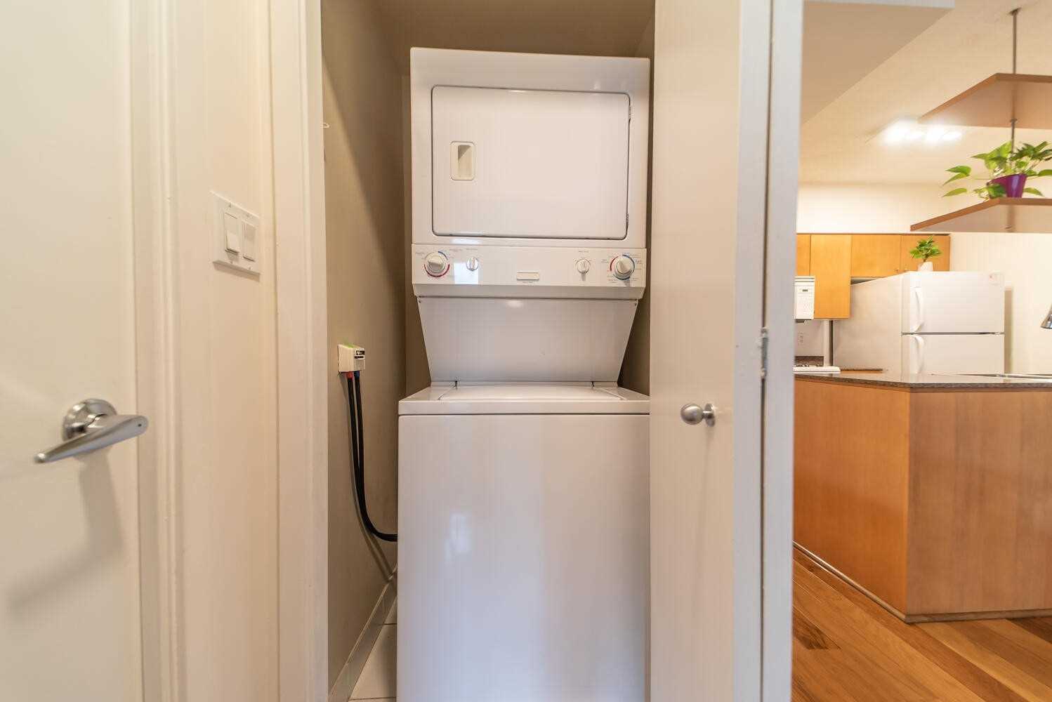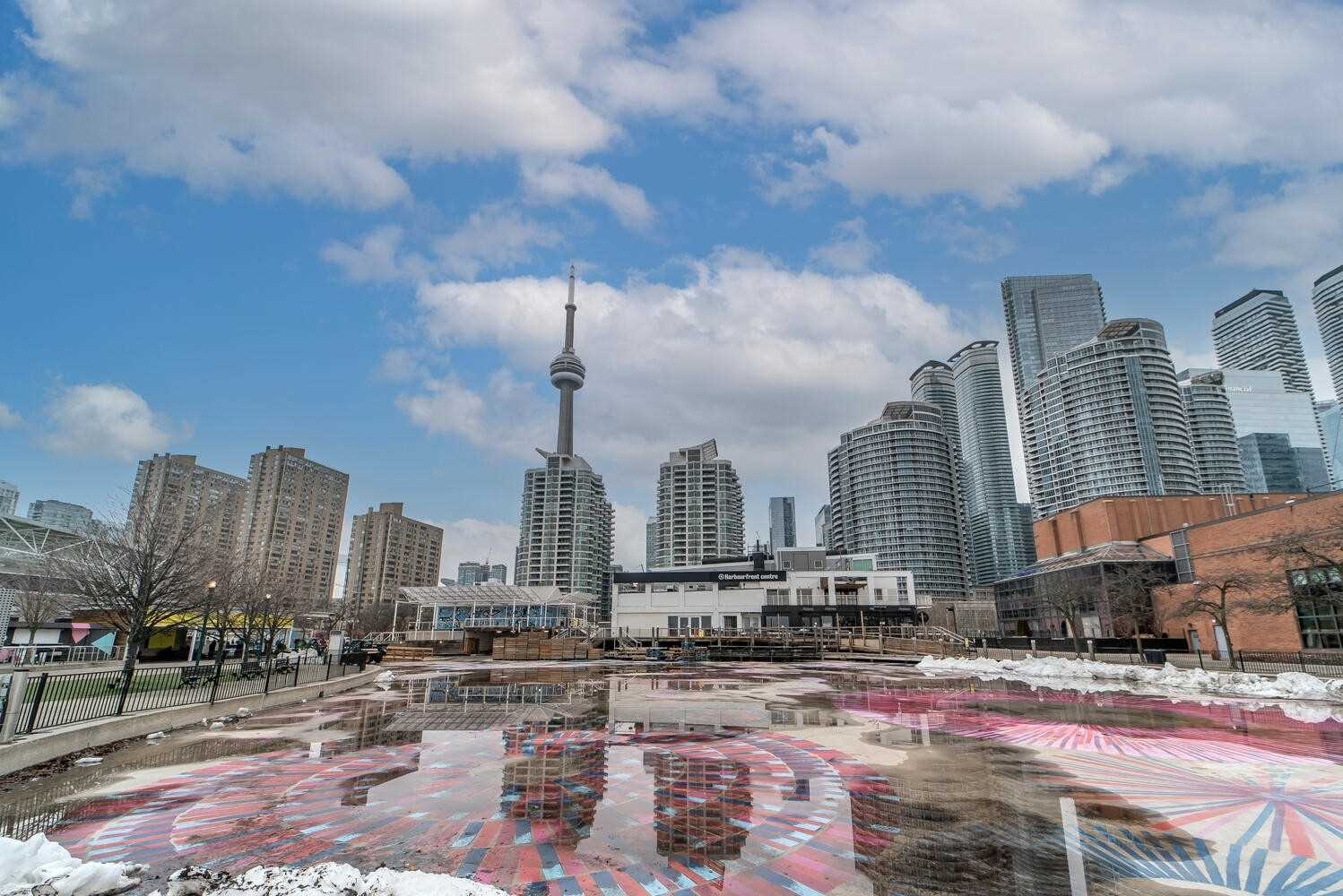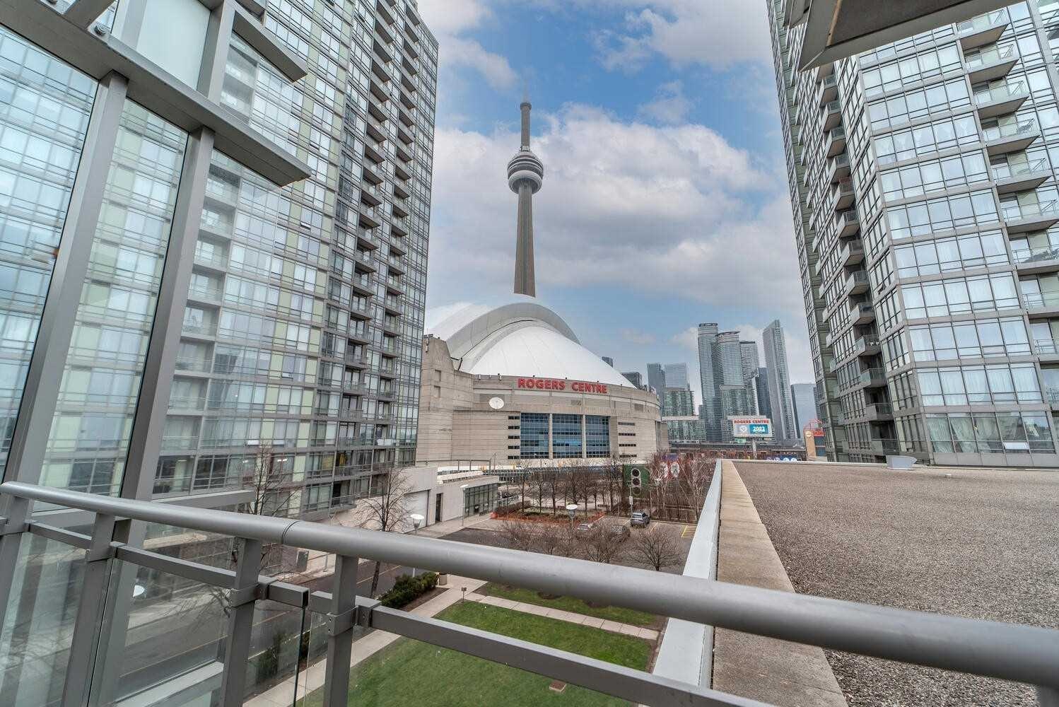 This spacious 1-bedroom + den offers a highly functional layout, with a versatile den that can easily serve as a second bedroom or a dedicated home office, comfortably accommodating a queen bed and storage. Designed for both comfort and practicality, the open-concept living space features quality finishes including granite countertops and engineered hardwood flooring, complemented by abundant natural light throughout. Includes one parking space and utilities electricity, water, gas. Residents enjoy 24-hourconcierge service and access to the renowned 30,000 sq. ft. Super Club, offering resort-style amenities including indoor pool, spa, fitness centre, basketball/squash/tennis courts, bowling alley, theatre room, party spaces, and more. Ideally located steps to the waterfront, Rogers Centre, CN Tower, Financial District, and TTC, offering the perfect balance of lifestyle and convenience.