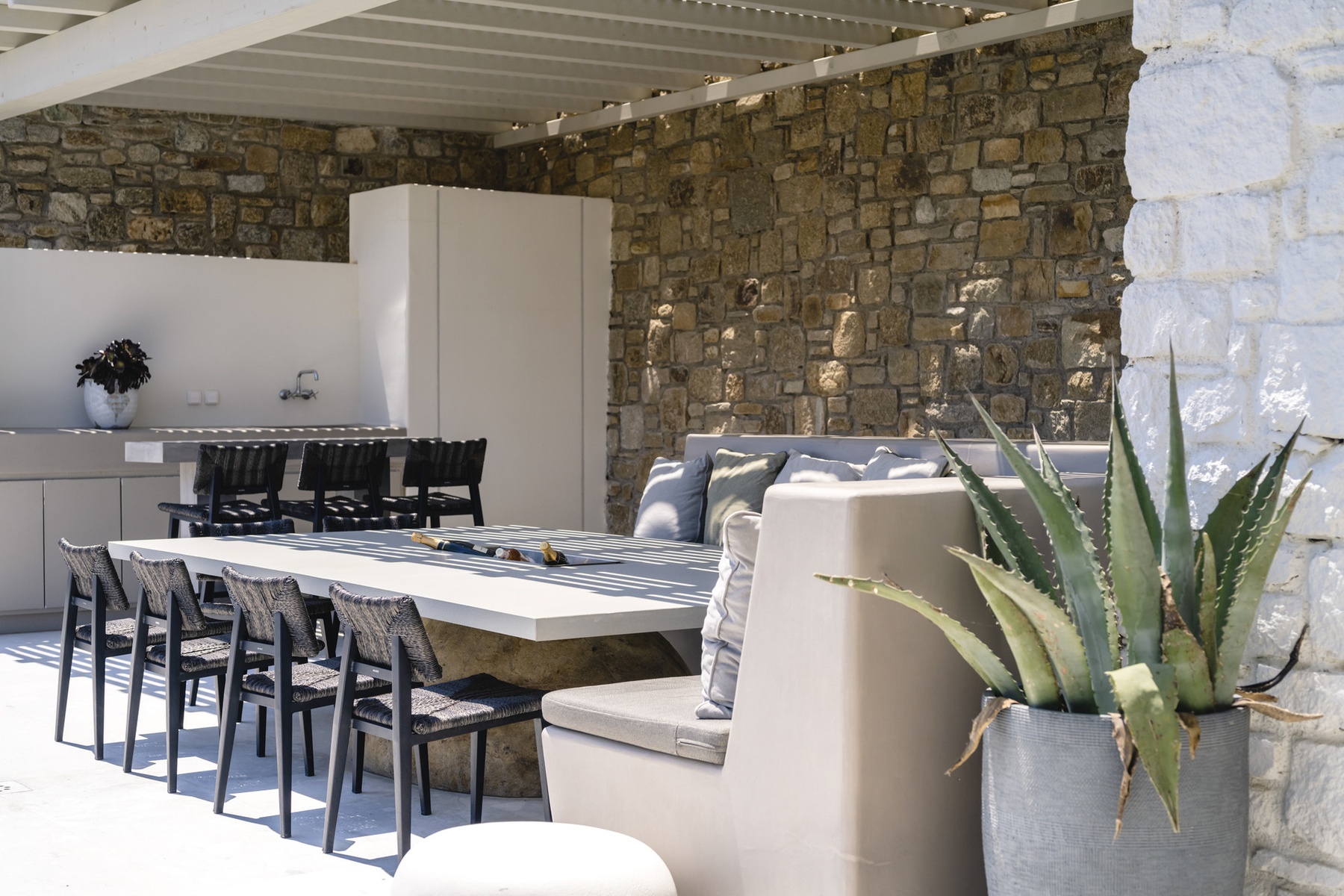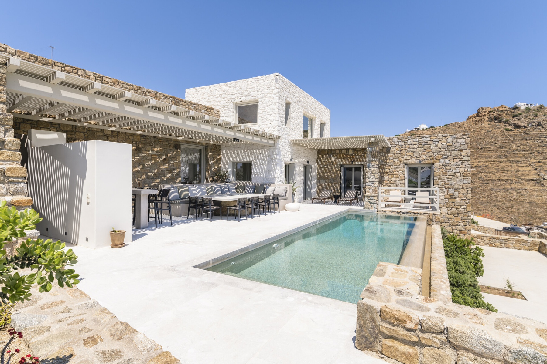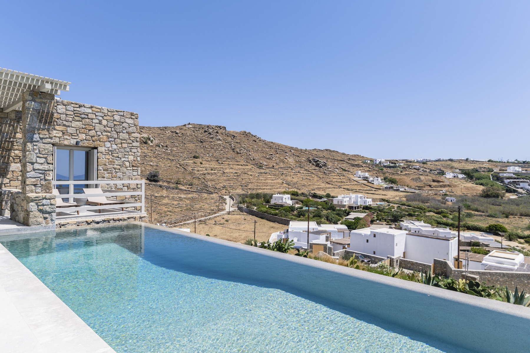 Surrounded by the natural beauty of the Mykonian landscape, Villa Aqua Ridge offers uninterrupted panoramic views and a serene atmosphere that feels worlds away—yet remains strategically positioned for easy access to the island’s highlights.