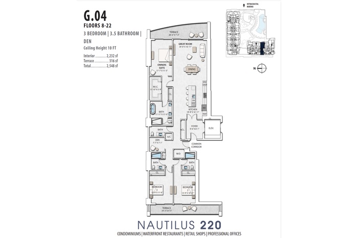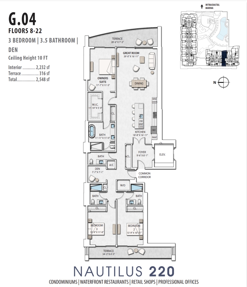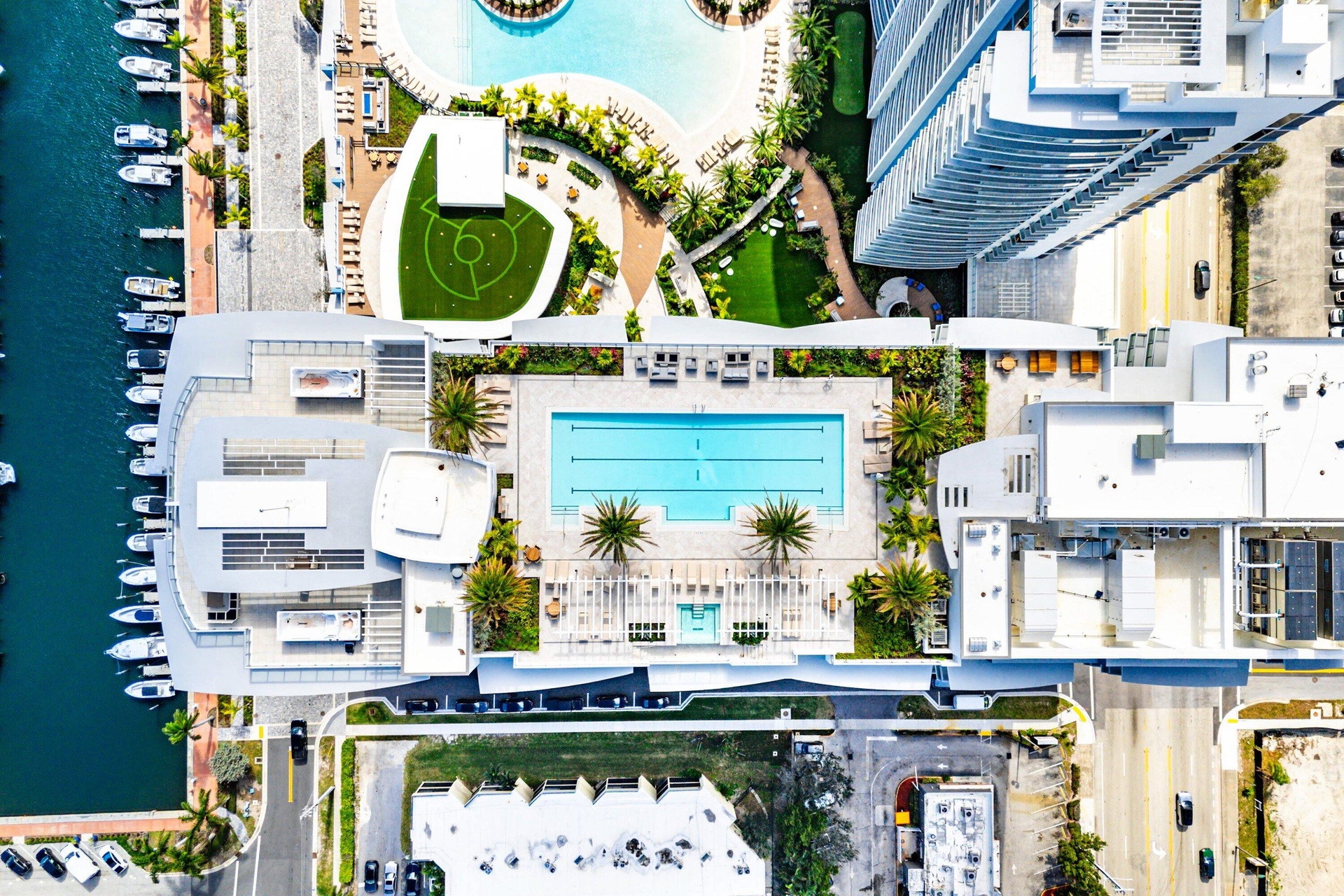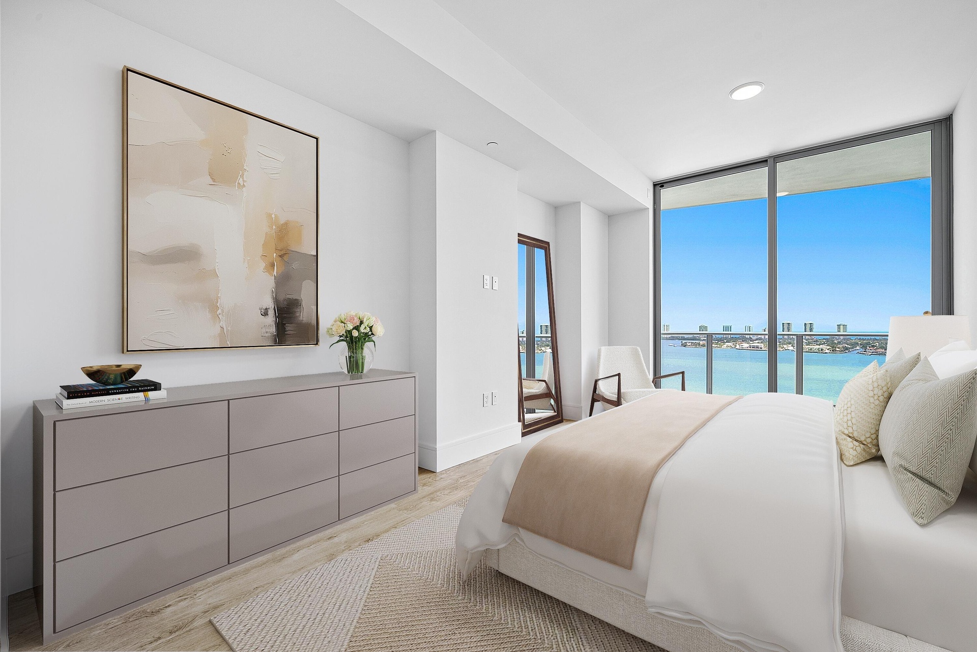 Wake up to sweeping, unobstructed waterfront views at Nautilus 220, where expansive glass and private outdoor space capture the beauty of the Intracoastal Waterway, Lake Park Harbor Marina, and the Atlantic Ocean. This 3-bedroom + den residence is designed to maximize natural light and coastal views, offering a bright, open layout that seamlessly connects indoor and outdoor living. Beyond the views, this residence offers the ease and peace of mind of brand-new construction—no renovations, no deferred maintenance, and a modern design ready to enjoy from day one. The primary suite boasts stunning, sparkling water views with a spa-inspired bathroom complete with dual vanities, freestanding soaking tub, luxurious shower, and water closet. The two spacious guest rooms have their own private bathrooms. The flexible den provides additional space for a home office or bonus room. Interior features include 10' ceilings, floor-to-ceiling hurricane impact glass, and a contemporary kitchen with quartz waterfall countertops, European cabinetry, and premium Miele appliances. Smart home-ready infrastructure and ultra-high-speed connectivity enhance everyday convenience. Nautilus 220 offers an amenity package that rivals a private resort. The 6th floor waterfront pool deck features beach entry, cabanas, and a large spa. The rooftop pool deck offers an additional lap pool and lounge area. There is a full wellness center with cardio and strength equipment, yoga and spin studios, sauna, steam, and physiotherapy rooms. Residents also have access to a theater lounge, golf and sports simulator, bowling lounge, club room, and multiple spaces for entertaining, working, and relaxing. Outdoor areas include a yoga deck, putting green, dog run and wash station, and landscaped gathering spaces along the water. One of the standout features of the building is the on-site waterfront restaurant, SeaHawk Prime by Chef David Burke, offering a high-end dining experience just downstairs. It adds a level of convenience and lifestyle that is hard to replicate. The location is another major advantage. You are minutes from the beach, a short drive to Downtown West Palm Beach for dining and shopping, and close to Palm Beach International Airport for easy travel. The surrounding waterfront area continues to see new development and investment, further enhancing the overall appeal and connectivity of the location.