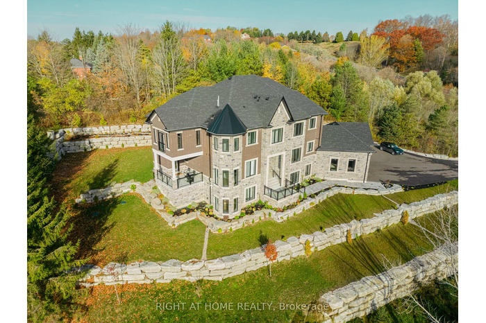 Welcome to your Dream Home nestled in the picturesque countryside of Palgrave! This recently constructed, estate home sits on over 3 acres of meticulously landscaped grounds, offering unparalleled privacy and tranquility. This home includes custom high-end finishes throughout over 9,400 square feet of luxurious living space, including a fully finished open-concept 3000 square foot basement with 10' high ceiling, lookout windows, and residential elevator. With timeless architectural design and attention to detail, this home has it all; high ceilings, oak stairs and railing with wrought iron pickets, wide plank hardwood flooring, large format porcelain tiles, solid poplar trim and doors, custom cabinetry, interior and exterior potlights, beautiful light fixtures, crown moulding, convenient second floor laundry room, and 20' high open to above great room with gas fireplace. With 4 + 1 bedrooms and 7 bathrooms, including a lavish master ensuite with heated floors, freestanding tub, and spacious shower with spa system, every inch of this residence exudes sophistication and comfort. Gorgeous custom chef's kitchen perfect for entertaining with large island, quartz countertops and backsplash, walk in pantry and coffee/wine bar. Designed specifically for this one-of-a-kind property, the home seamlessly integrates indoor and outdoor living with large windows inviting breathtaking views of the surrounding natural beauty. Close proximity to numerous local and provincial parks, conservation areas, farmers markets, golf courses and walking trails. Schedule your private viewing today.
