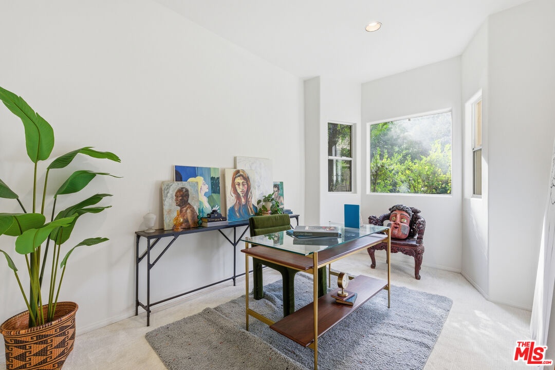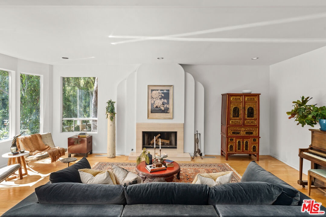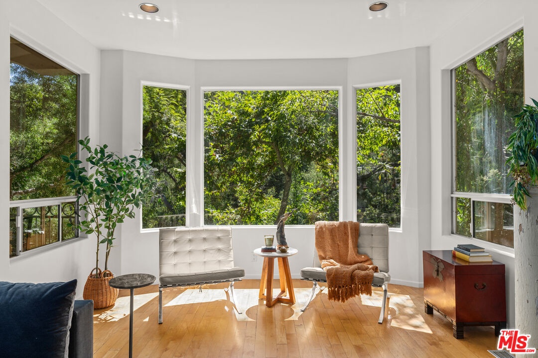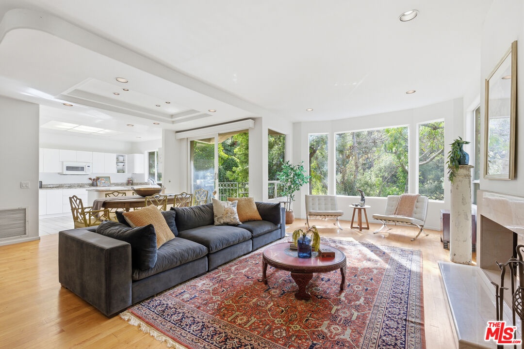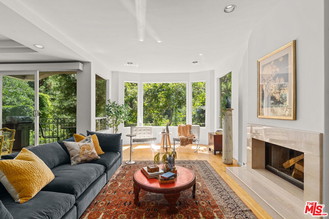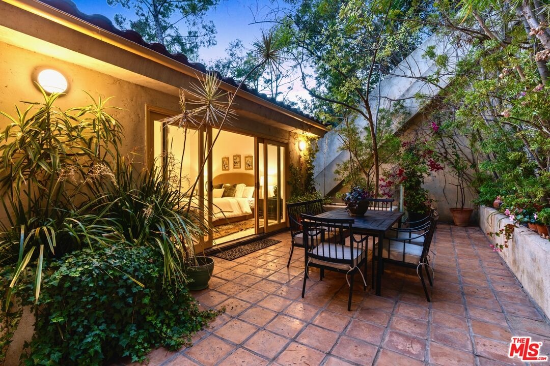 Nestled in a canyon above Beverly Hills, 10055 Reevesbury Drive is a centrally located, elegant retreat surrounded by peaceful nature. Seeking the nightlife of West Hollywood, the glamour of Rodeo Drive, the calm suburbia of Sherman Oaks, or the historic campus of UCLA? All are within a ten-minute drive from this Mediterranean villa.Located on a leafy street and zoned for top nearby schools, the true delight begins inside, as exceptional design and comfort await. Sun-filled open-plan spaces with recessed lighting make this multi-level home perfect for those seeking personal space and privacy while also offering a natural place to gather friends and family.A marble entry introduces a bedroom perfect as a guest suite, office, or creative studio, plus full bath and direct access to the attached two-car garage for easy parking and storage.The main level is built for easy entertaining: an open living and dining great room with expansive west-facing windows framing lush hillside views, wood-burning fireplace, and a chef's kitchen that keeps everyone connected while you host. Also on this floor, a generous second bedroom, bath and private courtyard - an intimate outdoor nook ideal for morning coffee or yoga.Upstairs, the primary suite lives like a private sanctuary, with soaring ceilings, a separate sitting area, a cozy gas fireplace, and over 1,000 square feet of comfort that makes long days feel shorter. Sliding glass doors open to a private terra cotta terrace for sunbathing or dinner al fresco. The spa-inspired primary bathroom is appointed with marble surfaces, a jetted soaking tub, and dual walk-in closets, evoking the luxury of a high-end spa.In a city that often demands choosing between convenience and calm, 10055 Reevesbury Drive stands out as a rare offering that delivers both. It's a place where ambition meets tranquility the pulse of the city at your fingertips, and a serene haven to come back home to.